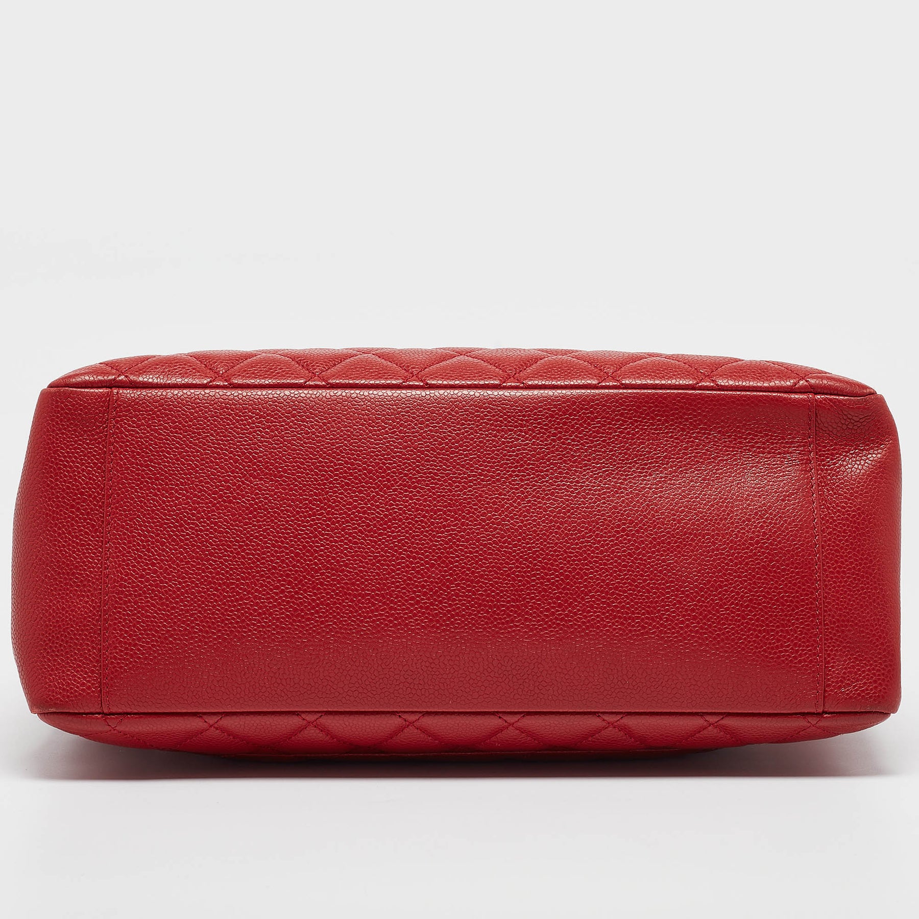 CHANEL Red Quilted Caviar Leather Grand Shopper Tote