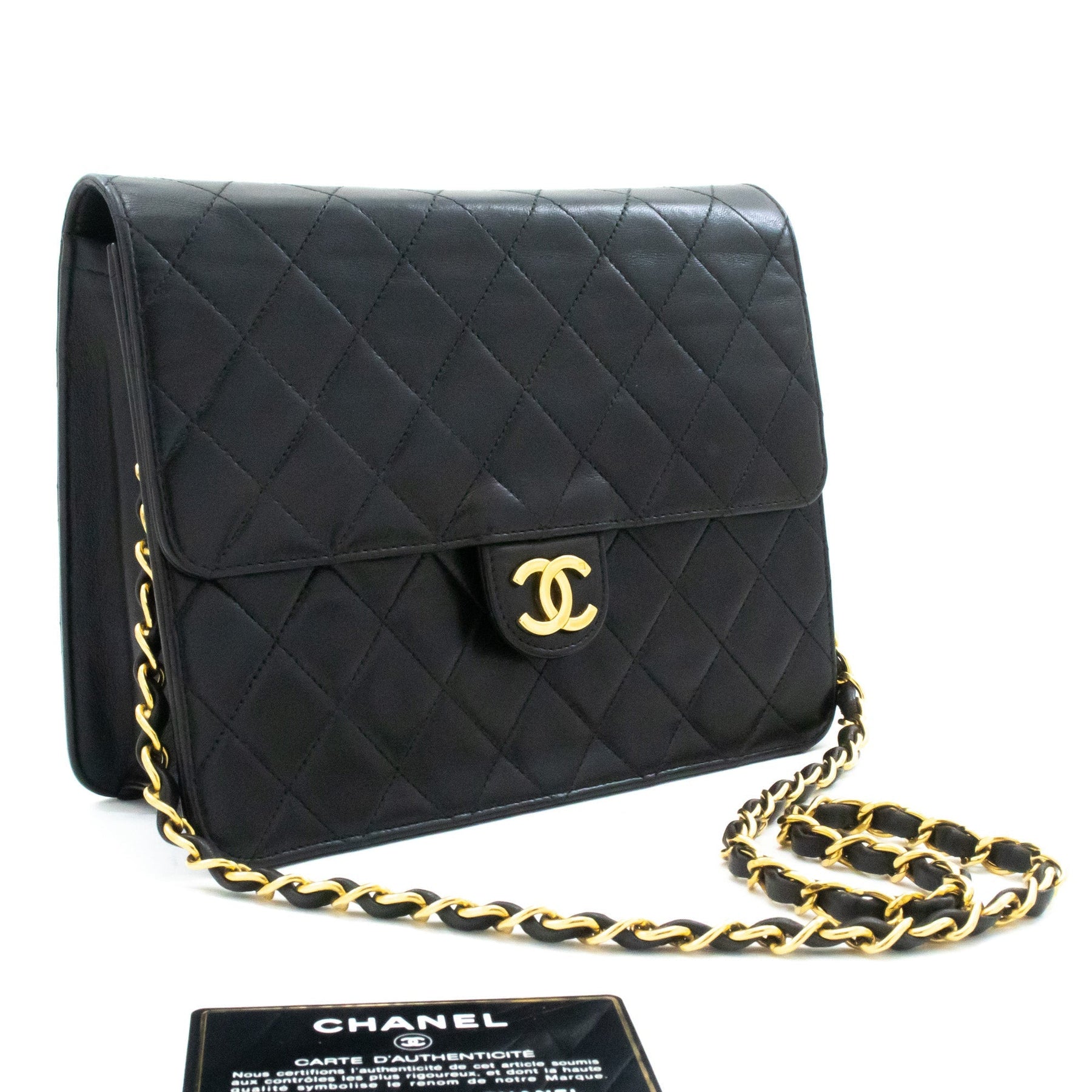 An CHANEL Small Chain Shoulder Bag Clutch Black Quilted New made of black Lambskin.