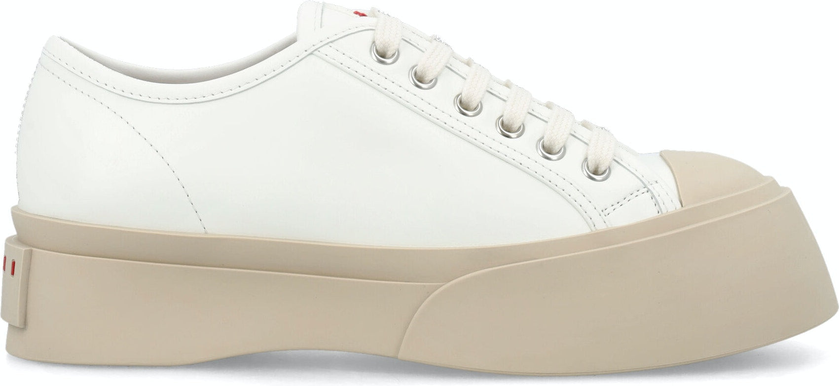 Step up your sneaker game with these leather lace-up women's sneakers by Marni. Featuring a round toe with contrast rubber toe cap, lace-up fastening, and a chunky platform rubber sole, these sneakers are perfect for adding a touch of casual cool to any outfit. Plus, the Marni logo on the back adds a subtle designer touch.