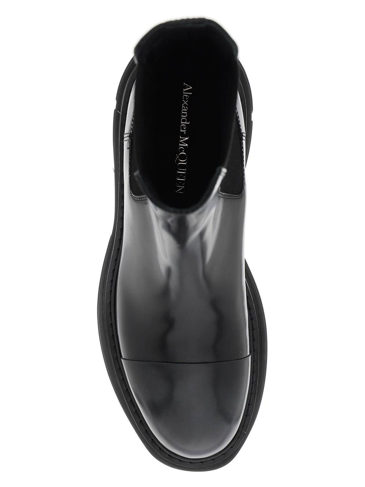 Step out in style with these brushed leather ankle boots, featuring characteristic elastic panels and a reinforced toe insert for a chic and durable look. The interior is lined in leather for comfort, while the oversized rubber tread sole adds a touch of edgy flair to your outfit.