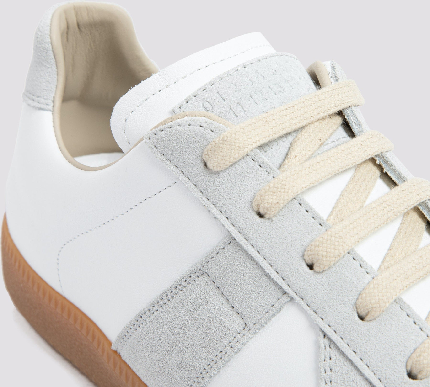 Elevate your style with these Italian-crafted low-top sneakers. The contrasting grey suede and white leather finish, alongside the branded footbeds and iconic logo patch tongue, give these trainers a timeless look that you'll want to wear again and again.