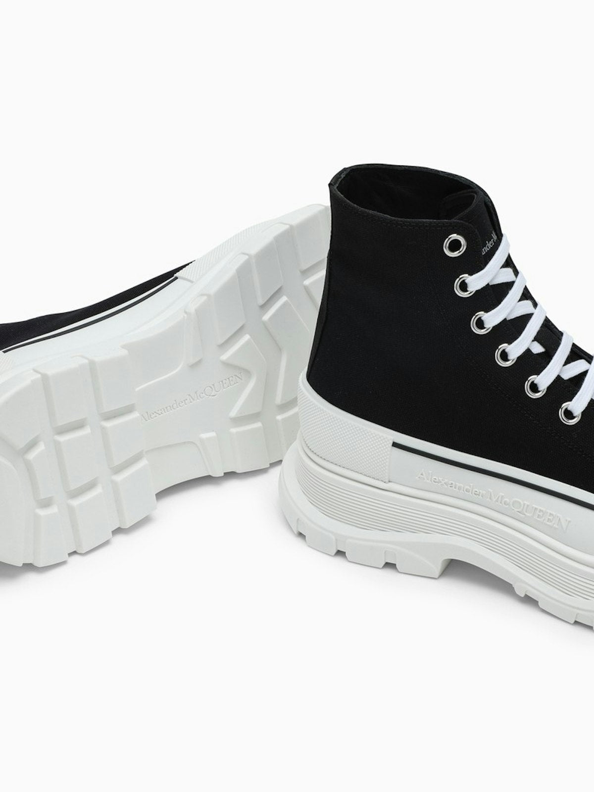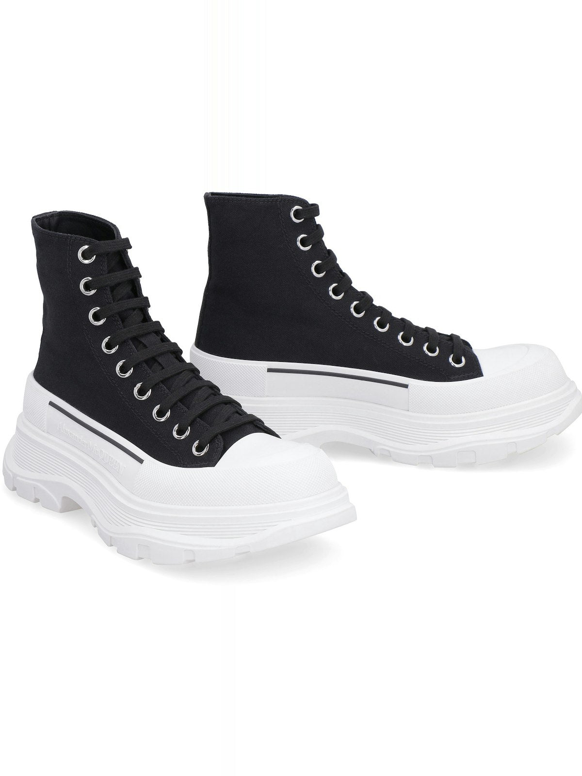 BOOTS BY IN BLACK CANVAS FEATURING A ROUND TOE, A LACE-UP FRONT FASTENING, A BRAND EMBOSSED TONGUE, A PULL TAB AT THE REAR, A WHITE RIDGED RUBBER SOLE AND ANKLE LENGTH.