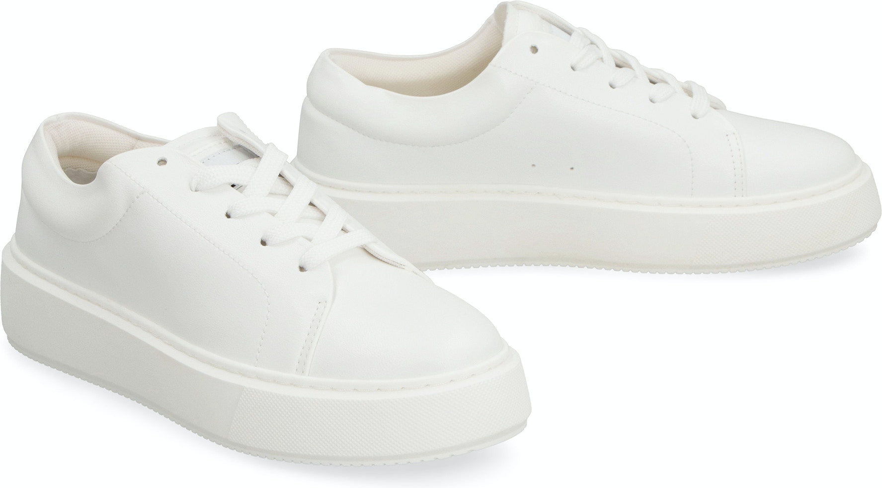 Elevate your sneaker game with these stylish low-top sneakers. The sleek white design with logo patches and embossed detailing adds a touch of casual elegance to any outfit. Plus, with a comfortable fit and durable rubber sole, these sneakers are both stylish and practical for everyday wear.