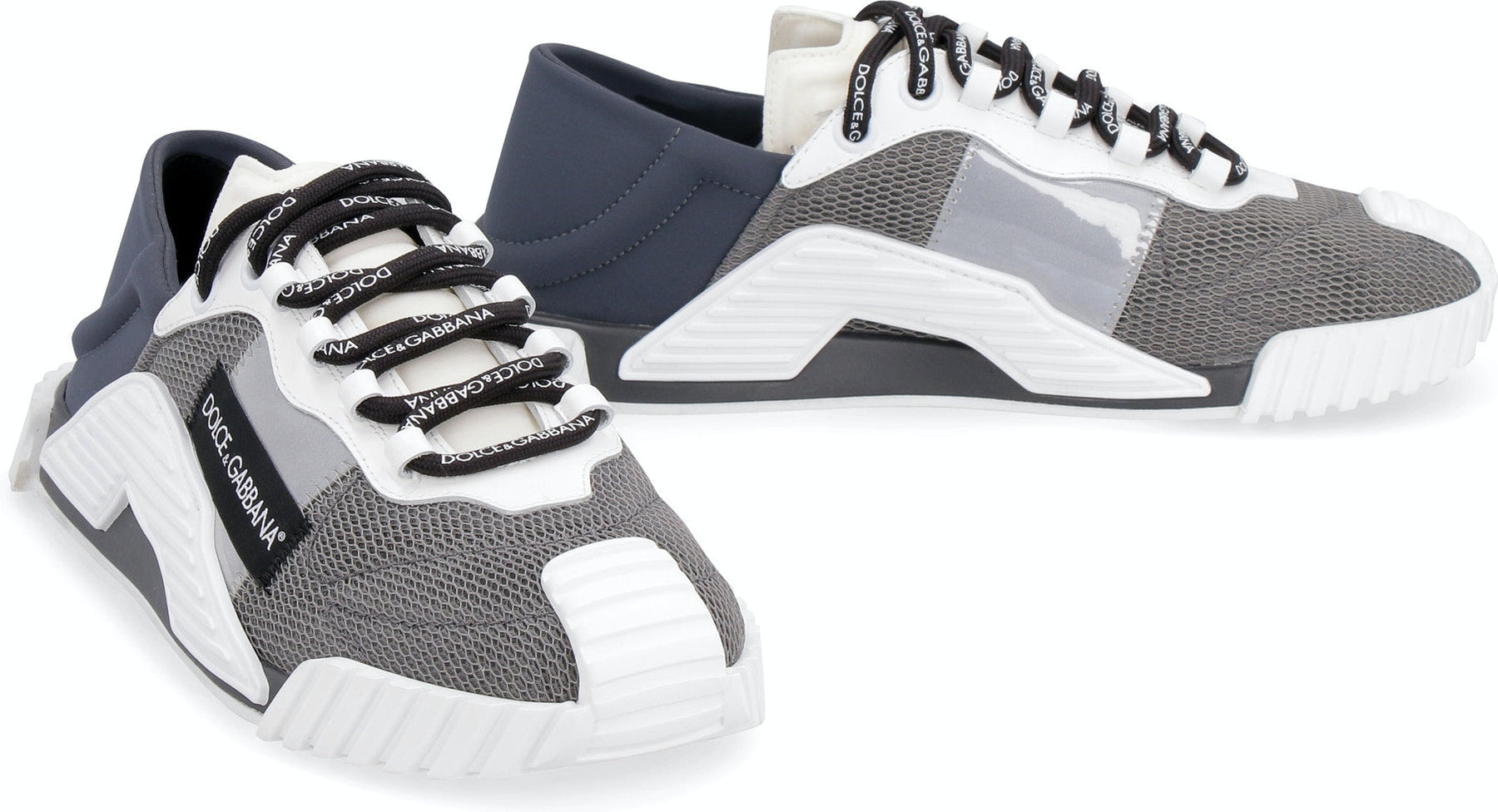 Step up your sneaker game with these technical fabric and leather NS1 sneakers from Dolce & Gabbana. Featuring PVC-covered reflective bands, logoed hiking laces, and a logo patch on the tongue, these sneakers are the perfect blend of style and function. With a fabric lining, removable leather insole, and rubber sole, these sneakers are as comfortable as they are stylish.