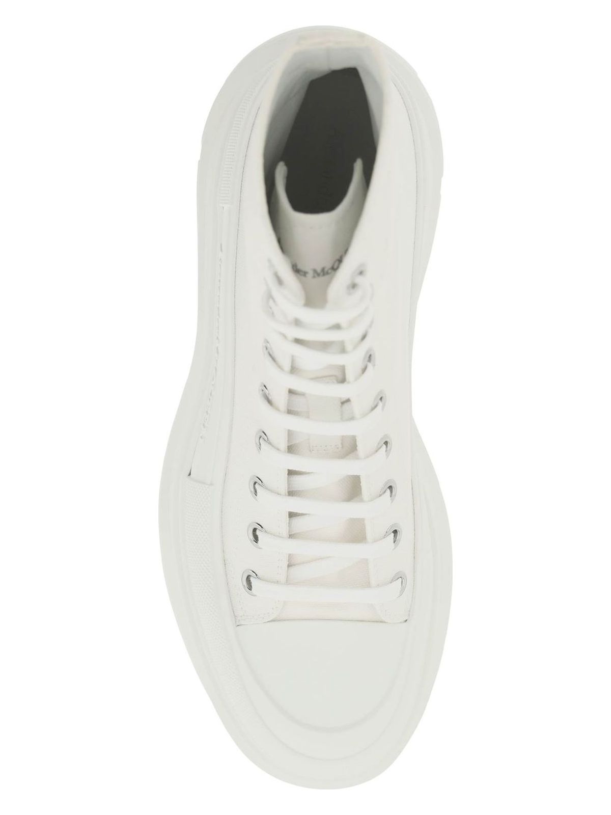 CANVAS ANKLE BOOTS BY ALEXANDER MCQUEEN FEATURING UPPER WRAPPED AT THE BASE BY A TEXTURED RUBBER WITH TONE-ON-TONE LOGO AND BRANDED GROSGRAIN TAPE AT THE BACK. LEATHER LINING AND OVERSIZED RUBBER SOLE. EXTRA LACES INCLUDED.