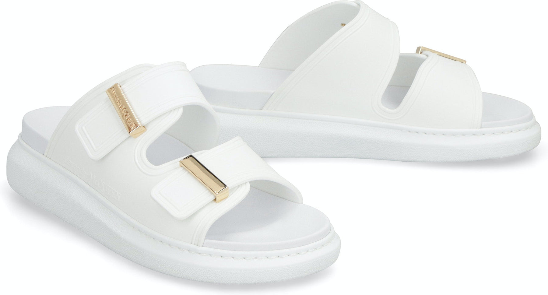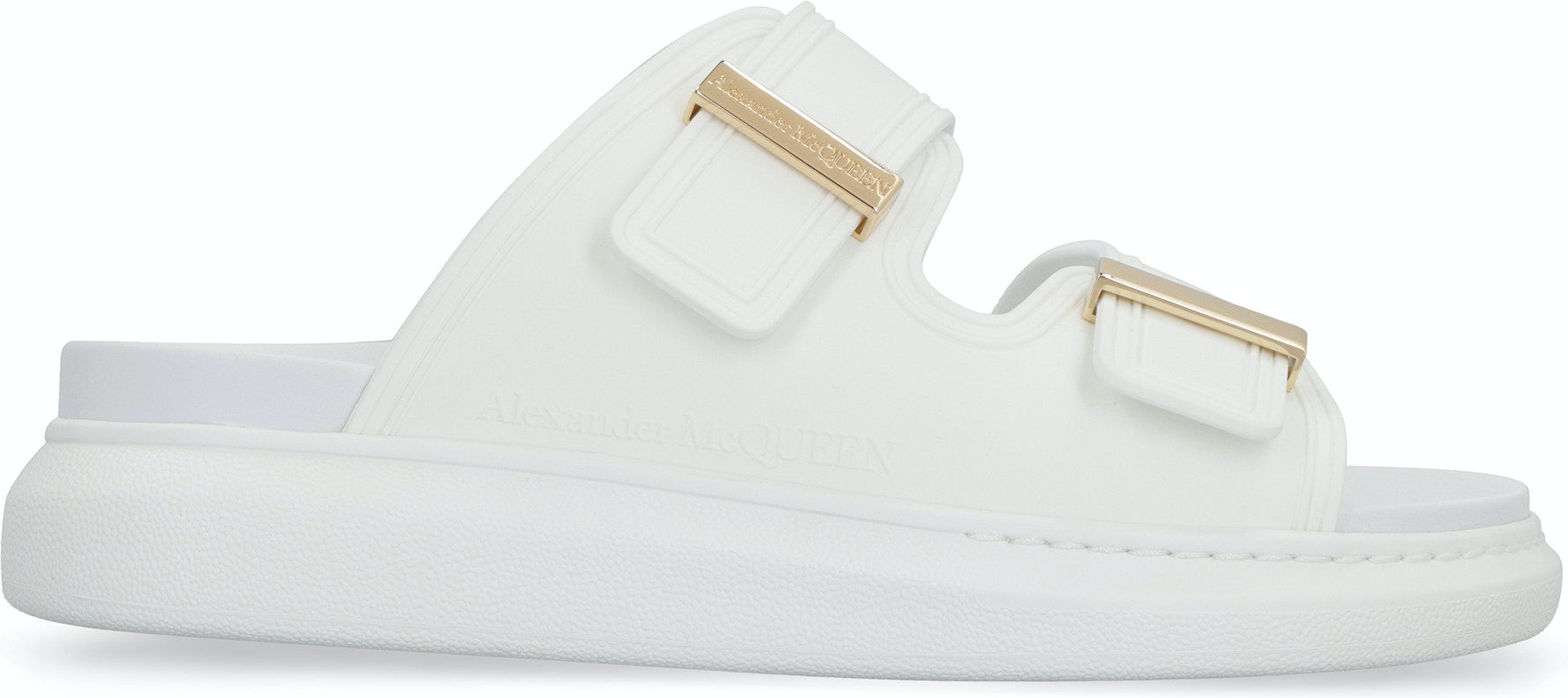 Elevate your style with these extraordinary HYBRID SLIDES. Crafted with the finest rubber, these slides feature a double strap with a striking gold-finished metal decorative buckle, complete with an engraved logo for a touch of luxury. The molded footbed and oversized sole provide unparalleled comfort and support, making these slides the perfect choice for both casual outings and lounging at home.
