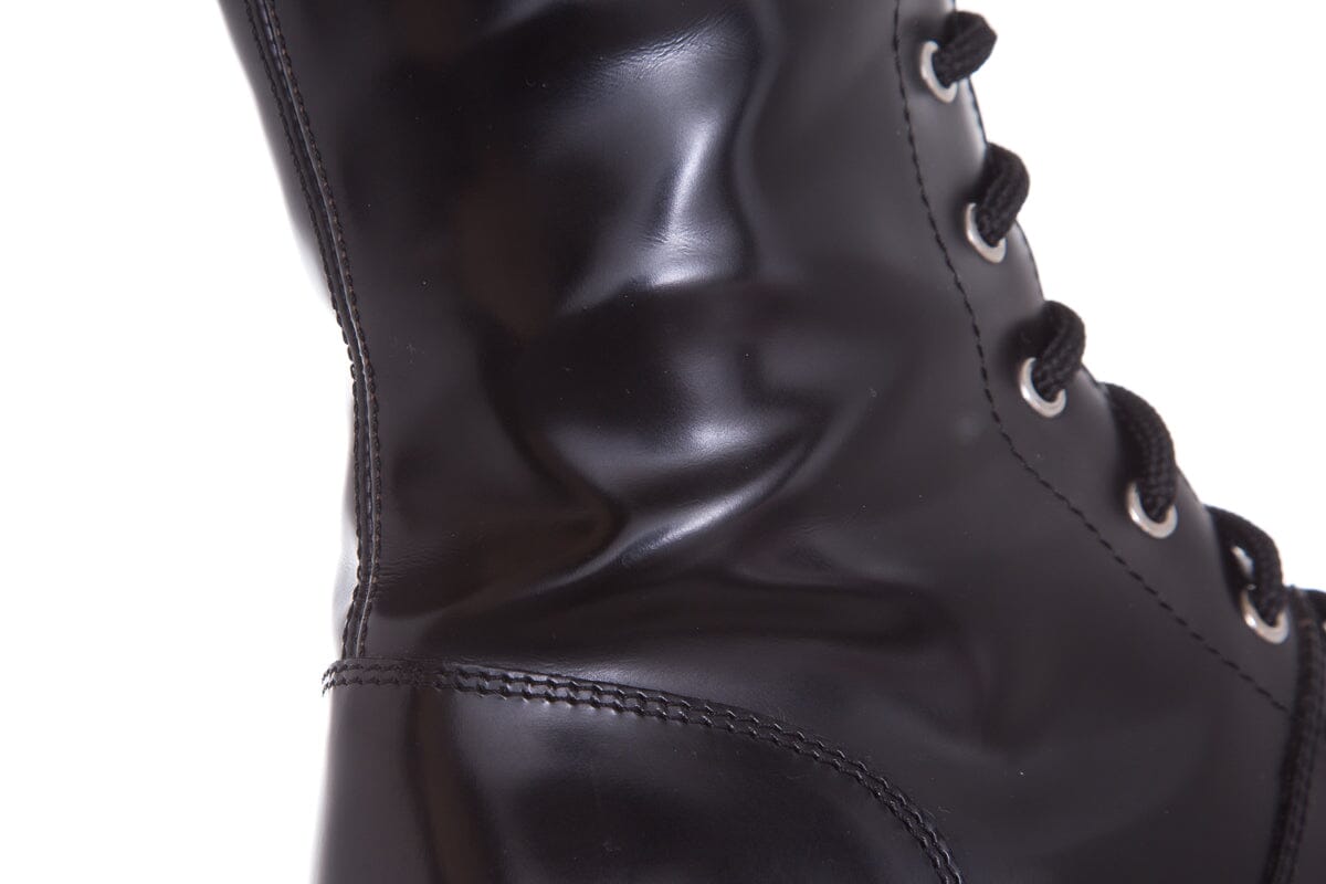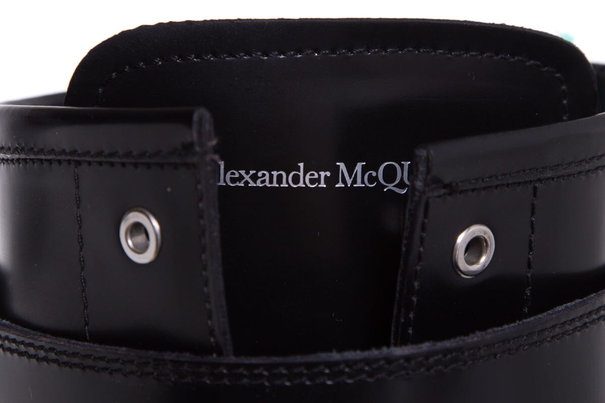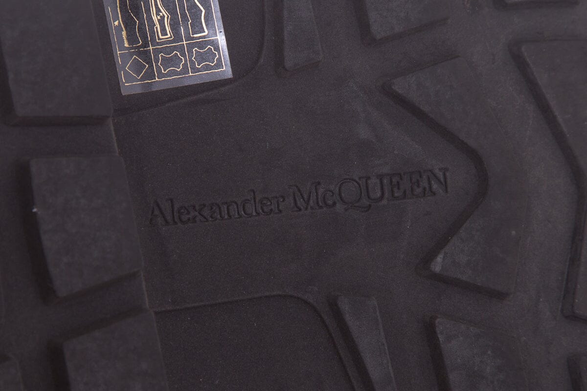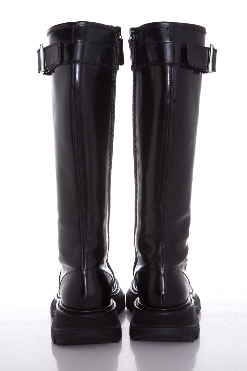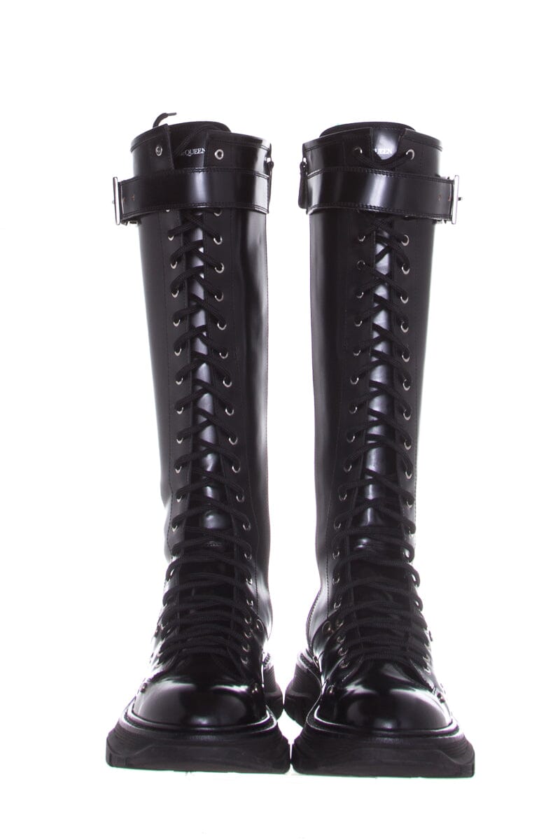Alexander McQueen Sitvale Pelle Black Tall Boots W/ Lug Sole; Lace up Closure. This item is in very good condition with slight creasing to leather.