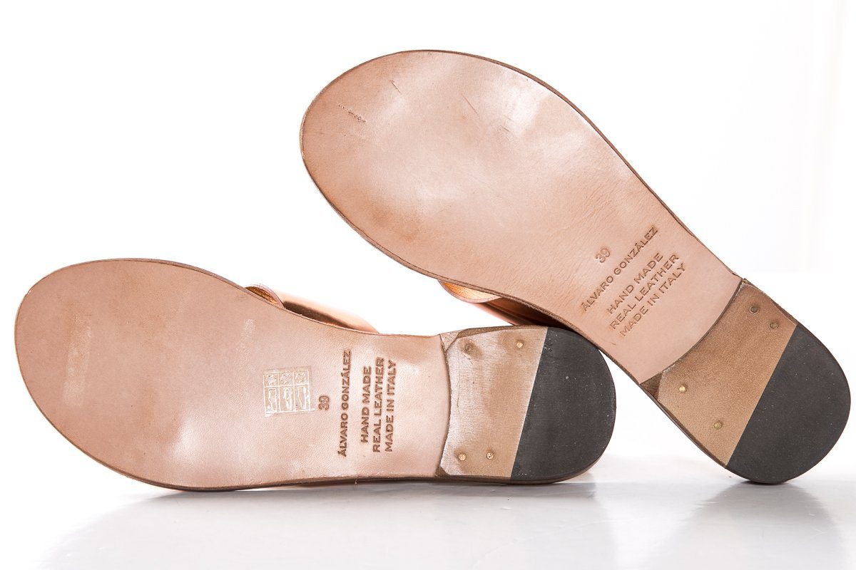 Alvaro Gonzalez Rose Gold Metallic Leather Slide Sandals SZ 39 NWT SALE