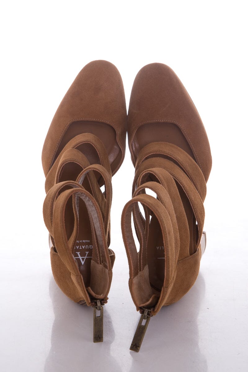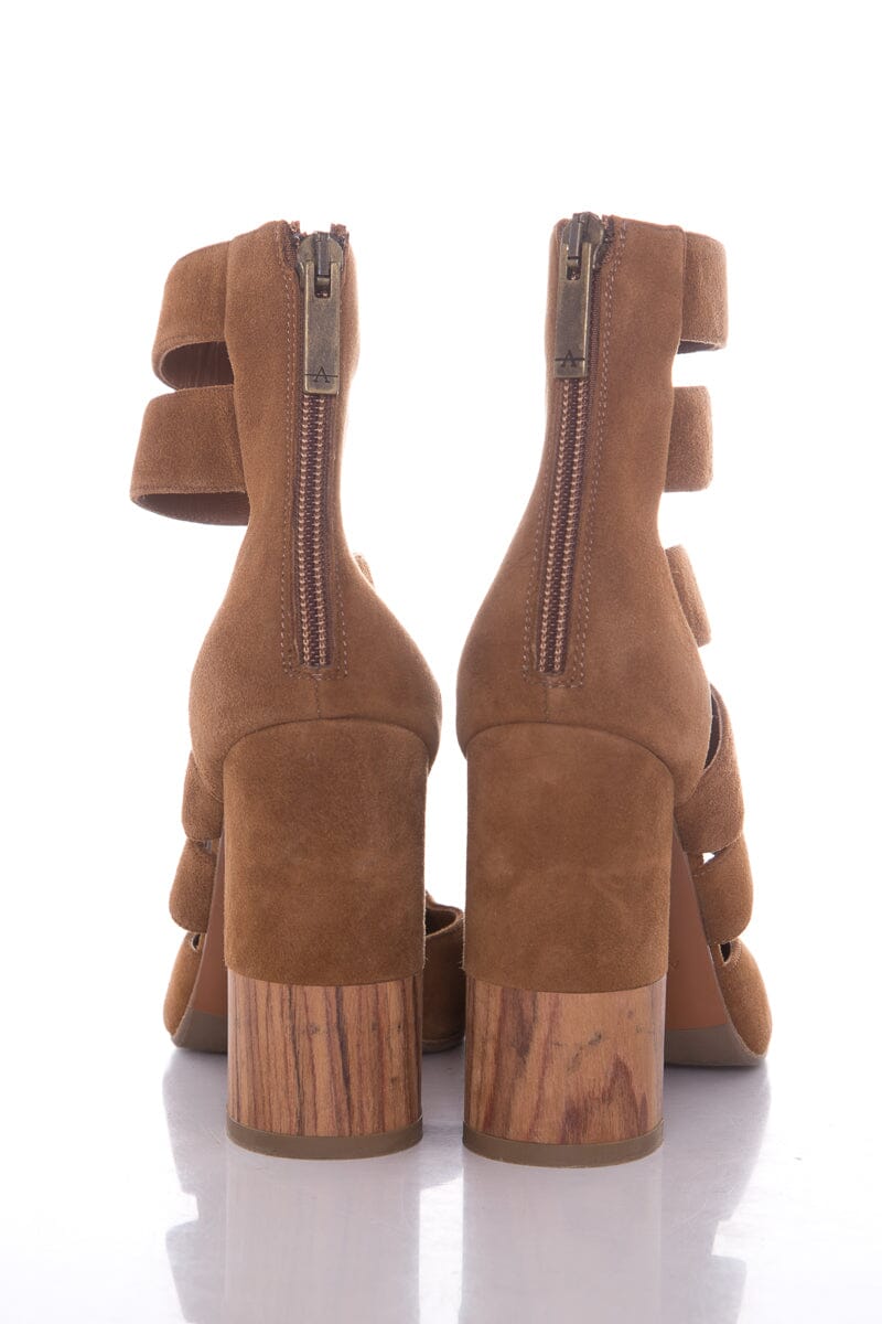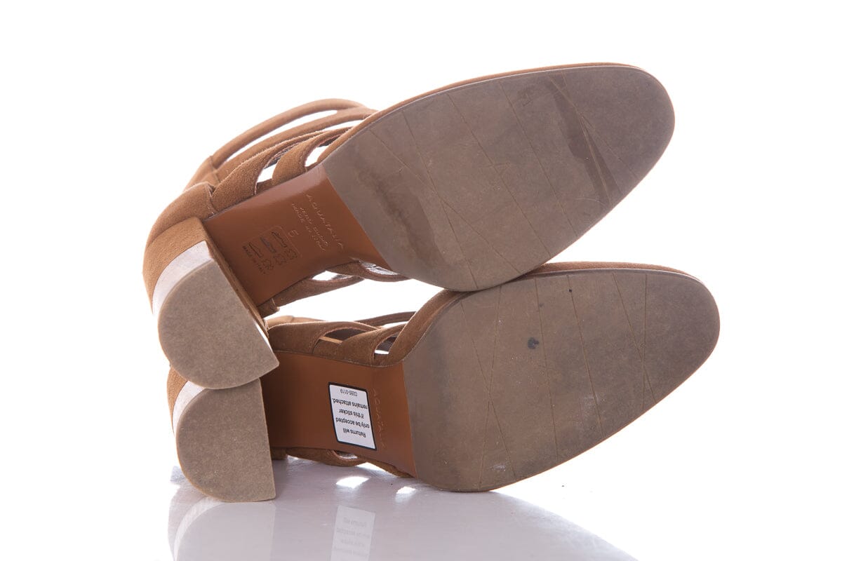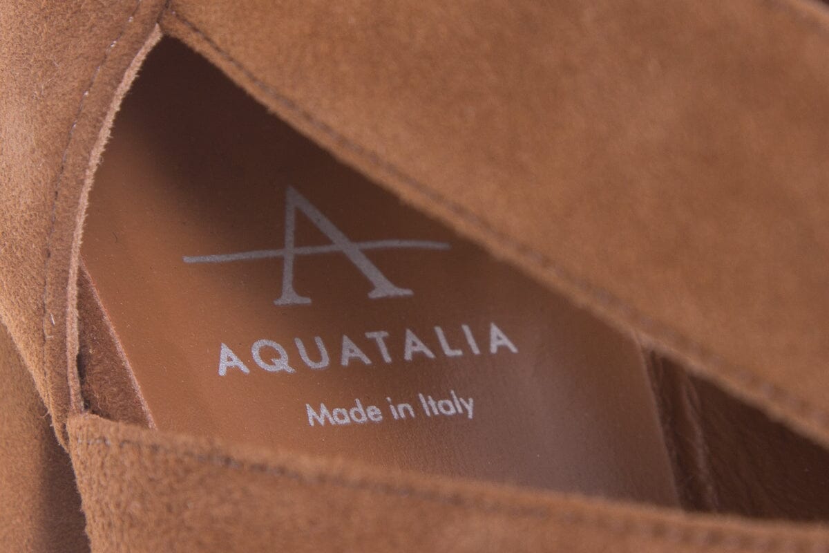 Aquatalia Emme Camel Suede Heeled Boots. This item is in good condition with some wear to soles.