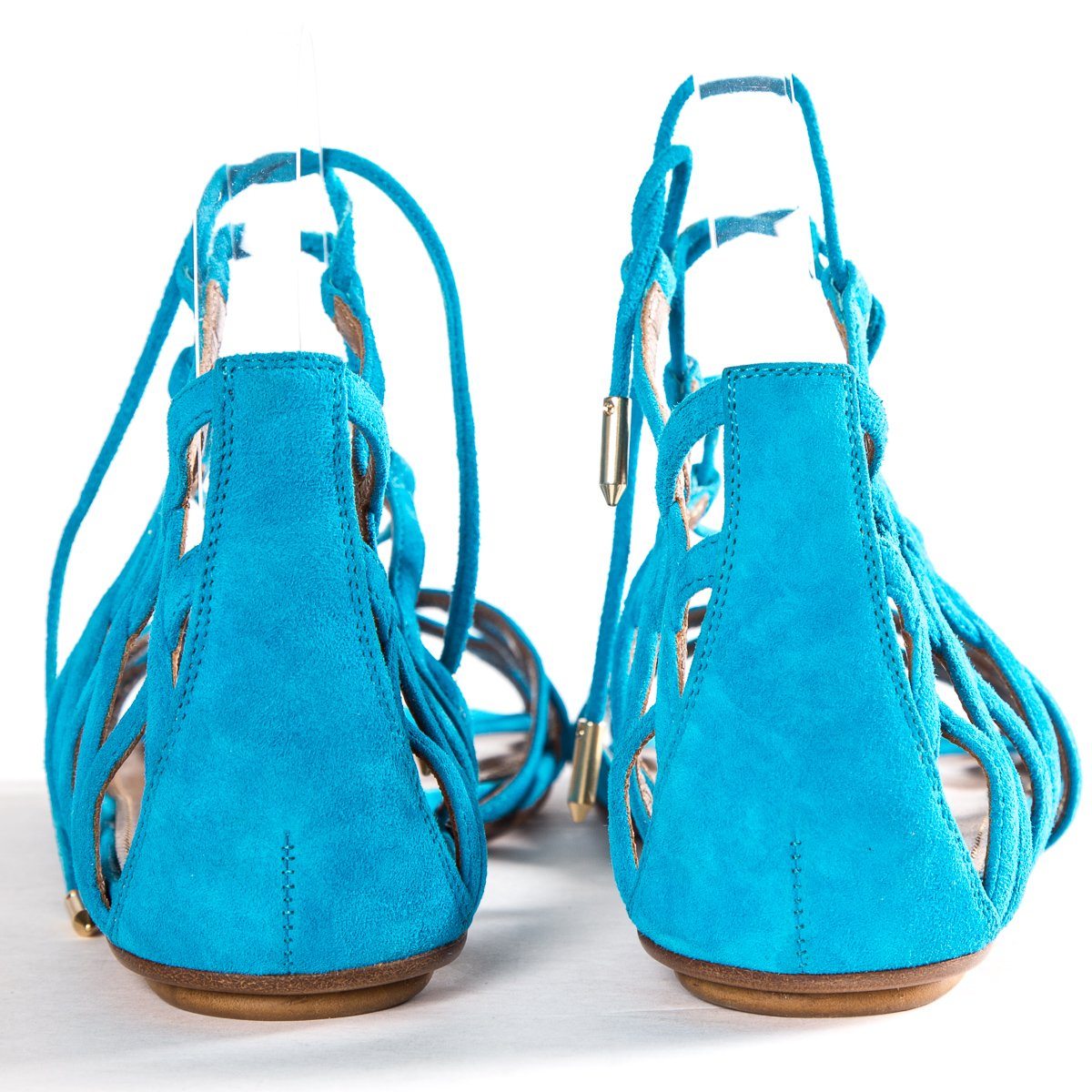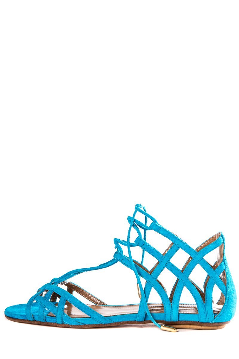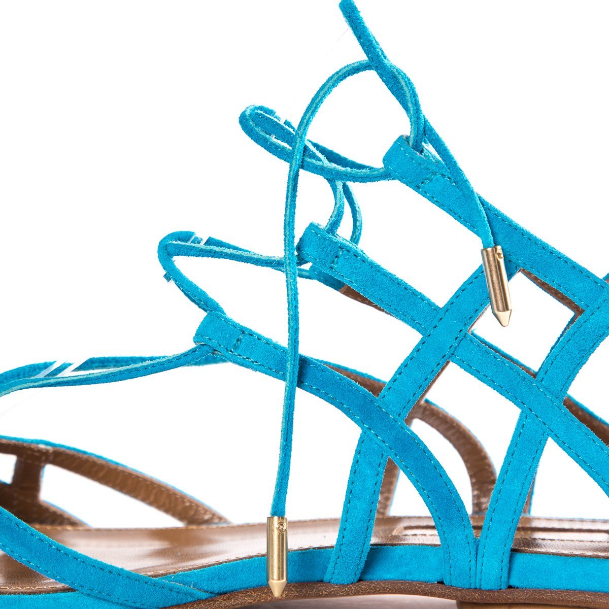 Aquazzura suede sandals with tonal stitching, tie closure and stacked heels