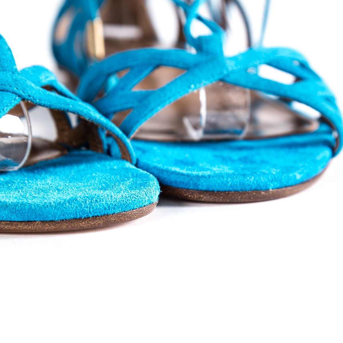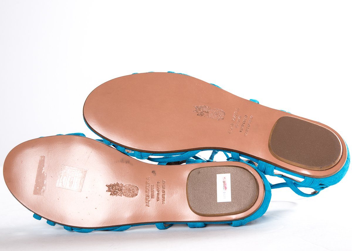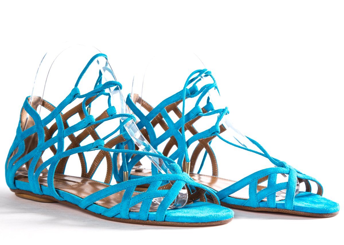 Aquazzura suede sandals with tonal stitching, tie closure and stacked heels