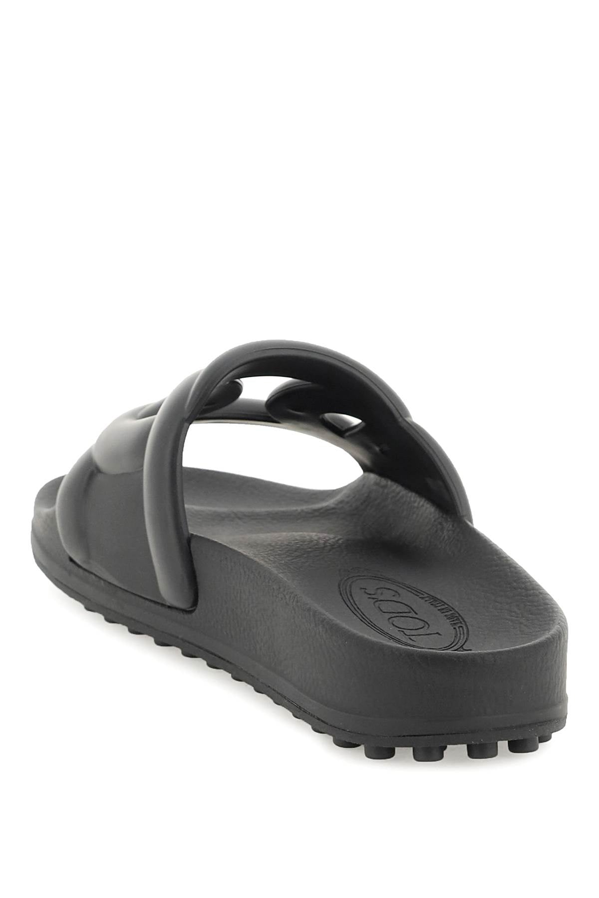 Elevate your summer wardrobe with these luxurious 13K Rubber Sandals. Crafted in sleek black rubber with a tone-on-tone maxi chain detail on the upper, these sandals exude a sophisticated and stylish vibe. The embossed Tod's logo on the upper and insole adds a touch of designer flair, while the rubber pebble outsole ensures durability and comfort. Perfect for both casual and dressy occasions, these sandals are a must-have for fashion-forward individuals who appreciate quality and attention to detail. Embrace the Italian luxury with these exquisite sandals that effortlessly combine style and comfort.