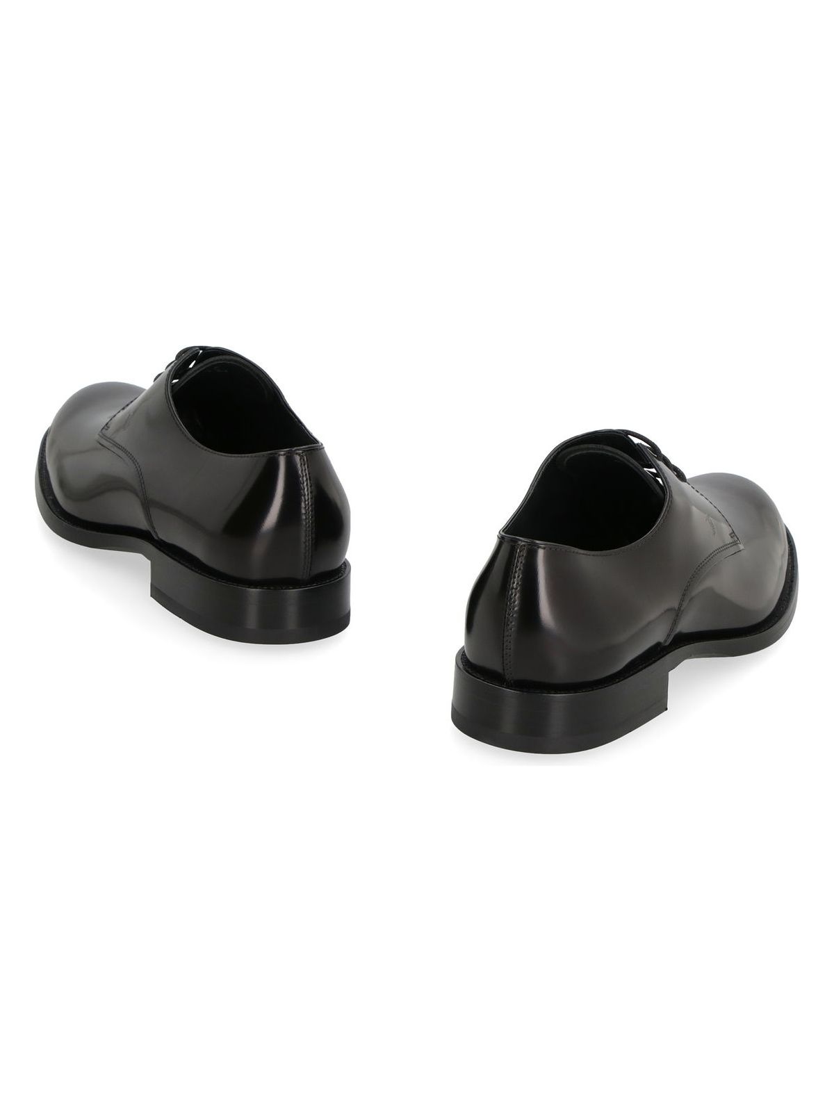 Step up your style game with these classic derby shoes in smooth black leather, complete with an embossed Tod's monogram detail. The leather sole with rubber insert adds a modern touch to this timeless design, perfect for any fashion-forward individual.