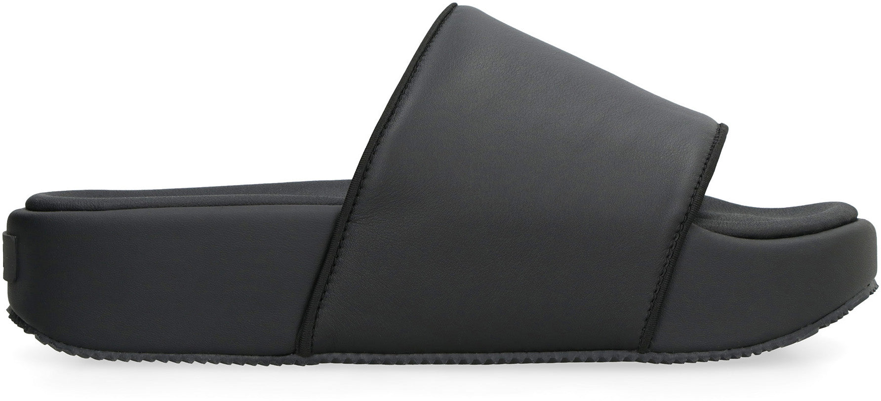 Step into luxury with these exquisite leather slides. The round toeline and platform sole offer both style and comfort, making them the perfect choice for any fashion-forward individual. Crafted from 100% technical fabric, leather, and rubber, these slides are not only fashionable but also durable, ensuring they will be a timeless addition to your wardrobe.