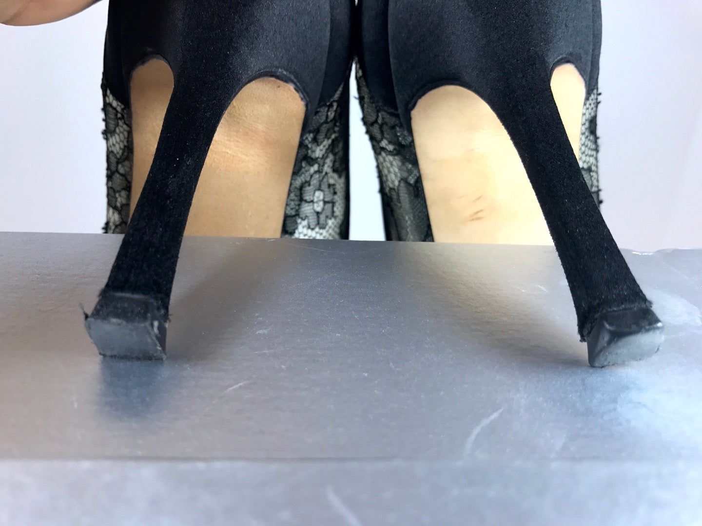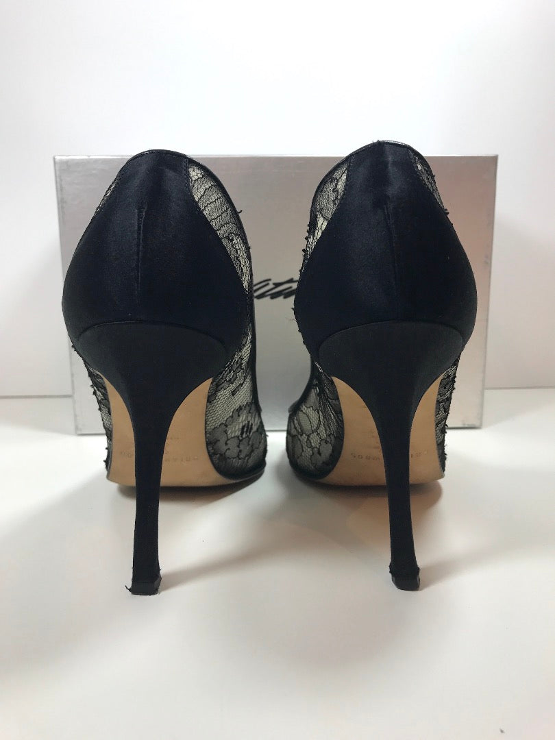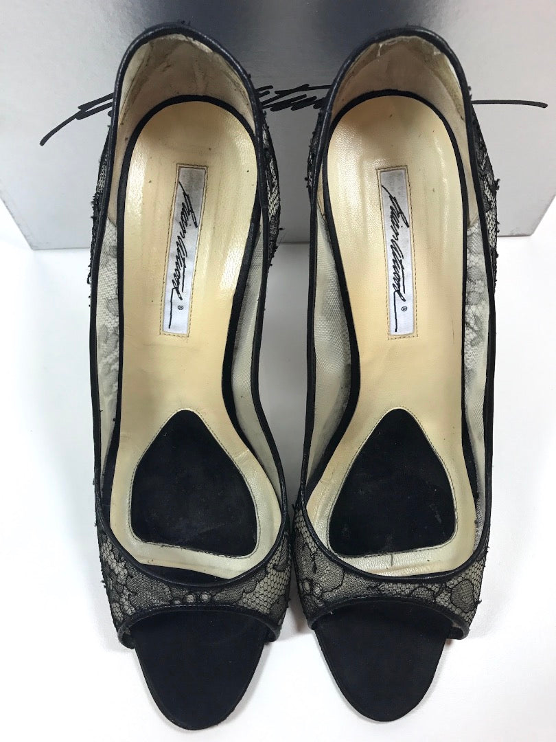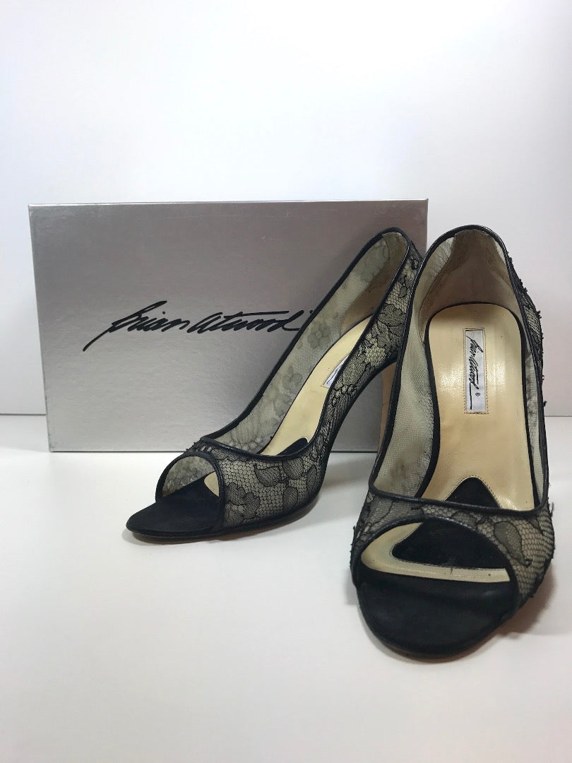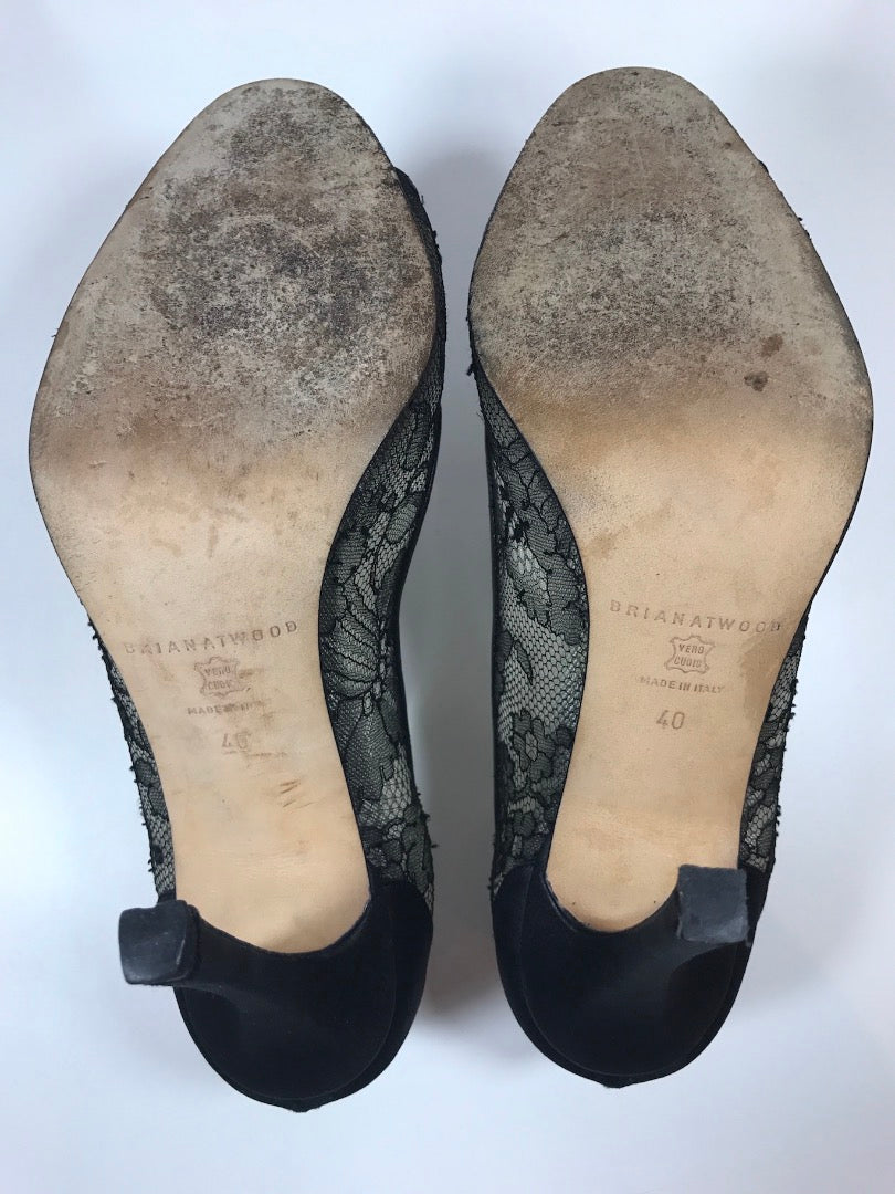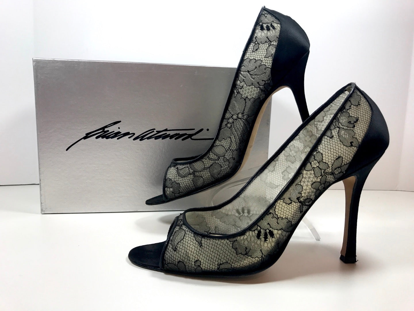 Amazing Black Lace Pumps by Brian Atwood. Overall in Great Condition, light wear to sole, and small fabric ball of foot pad.
