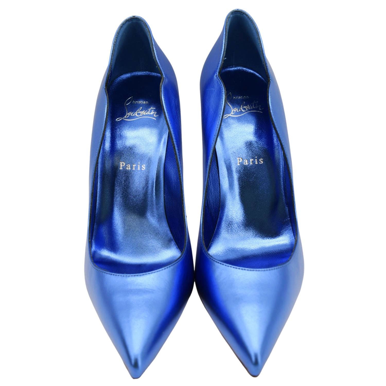 Elevate your style with the CHRISTIAN LOUBOUTIN So Kate 120 Metallic Leather Shoes in blue. These iconic pumps feature a sleek, pointed toe and a dramatic 120mm stiletto heel, perfect for making a bold fashion statement.