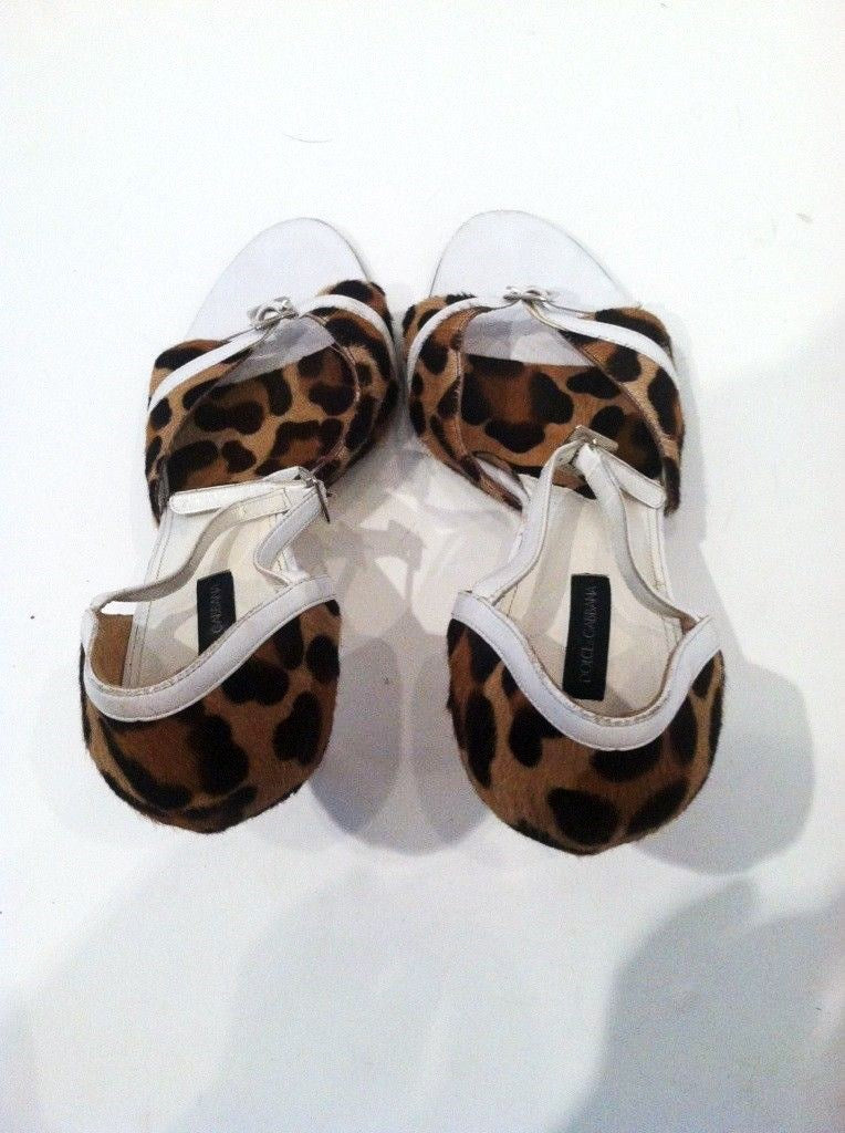 Here is a stunning pair of opened toe leopard print pony hair heels by Dolce & Gabbana. This pair is , but in good condition. Please refer to photos for additional details.