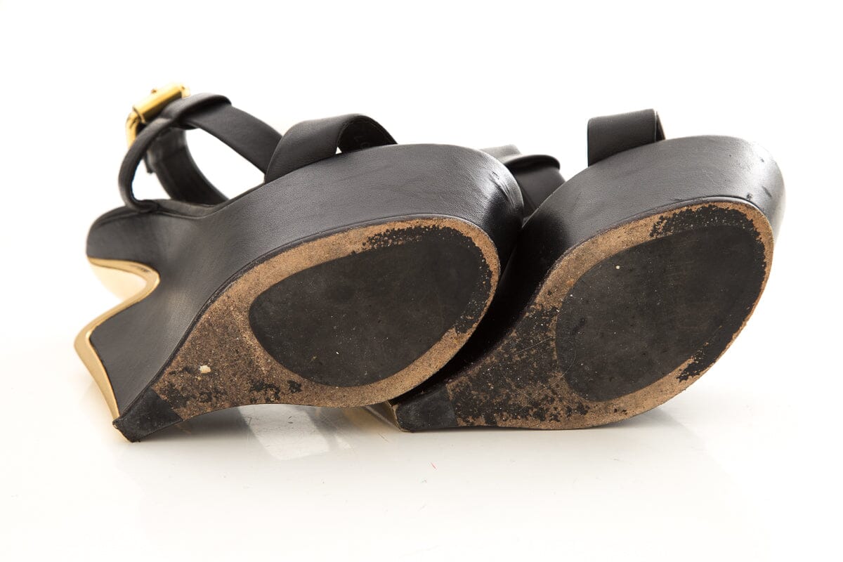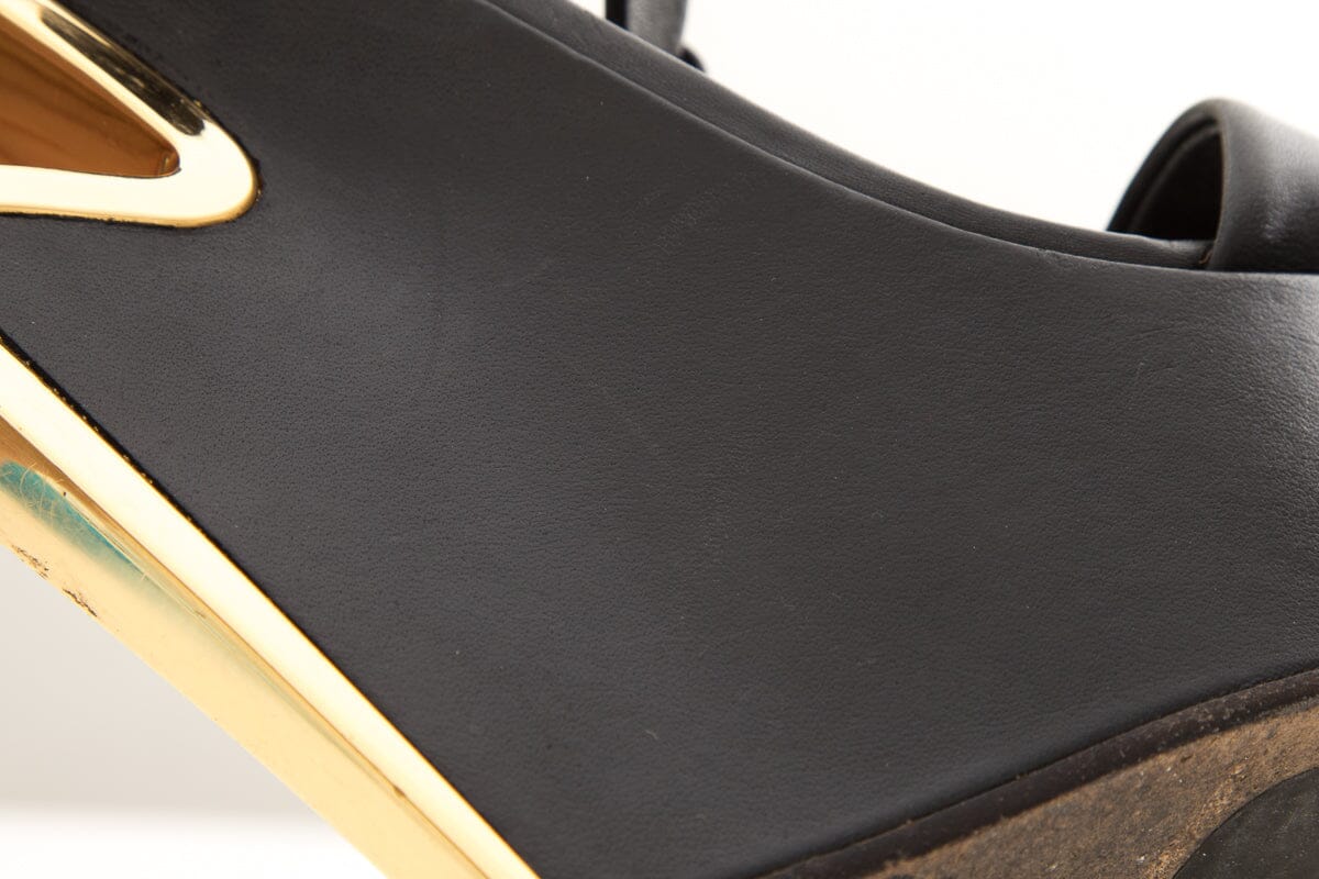 Giuseppe Zanotti Black Wedge. This item is in good condition with some wear to soles and scratching to leather.