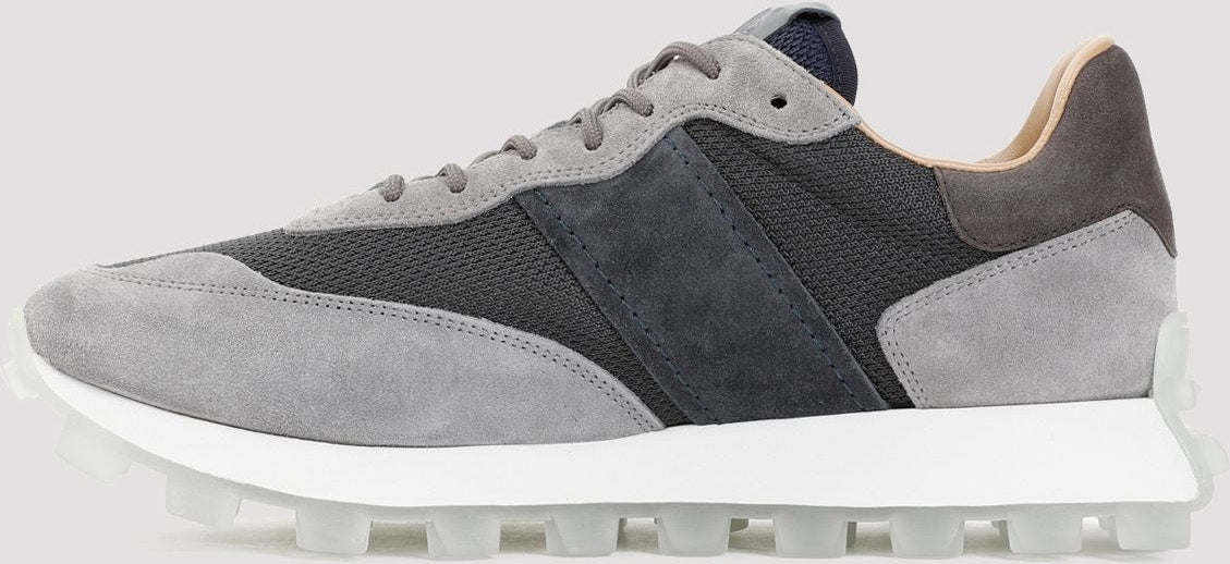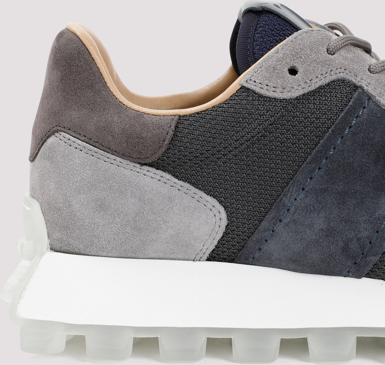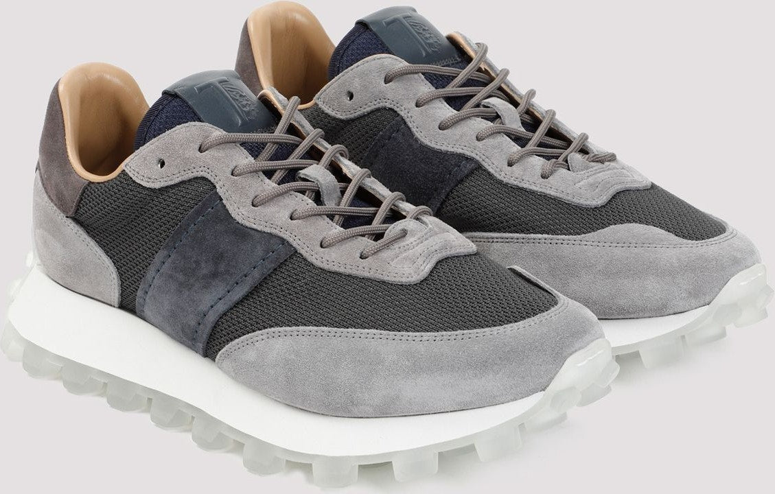 Stay ahead of the competition with Tod`s Grey Mouse Running Sneakers. Designed with an almond toe and lace-up closure for comfort and fit, these sneakers also feature an embossed logo on the tongue and perforated grey details on the upper for added style. The side dark grey details and brown heels add a touch of sophistication, while the white sole provides traction and durability. Elevate your workouts with these sleek and functional sneakers.
