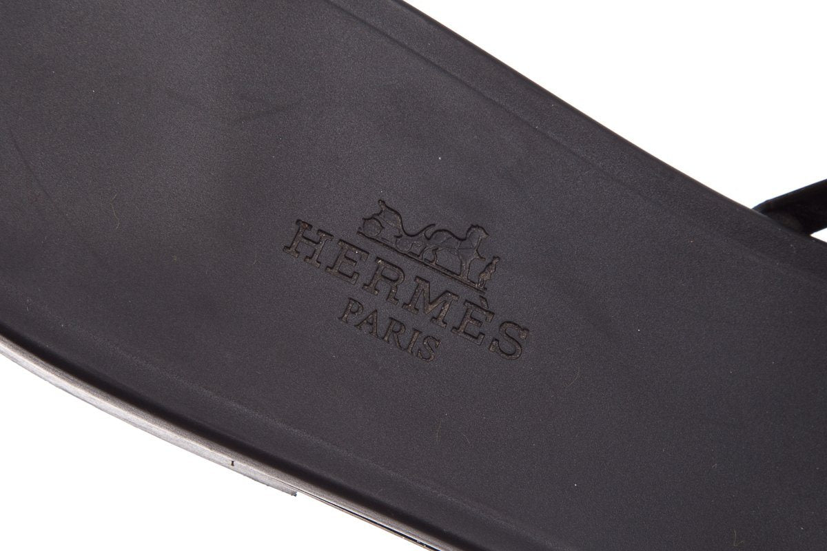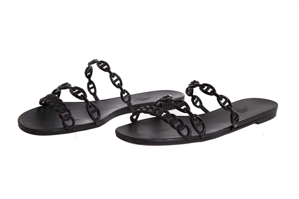 Hermès Black Rivage Chaîne d'Ancre Insignia Rubber Sandals SZ 41
