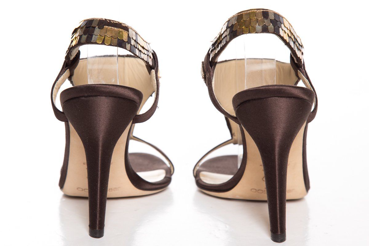 Jimmy Choo Brown Satin Sandal With With Silver And Gold Sequin Detail