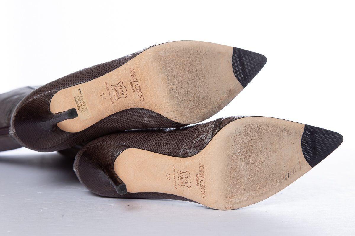 Jimmy Choo Karung Brown Knee-High Boots SZ 37 Sale