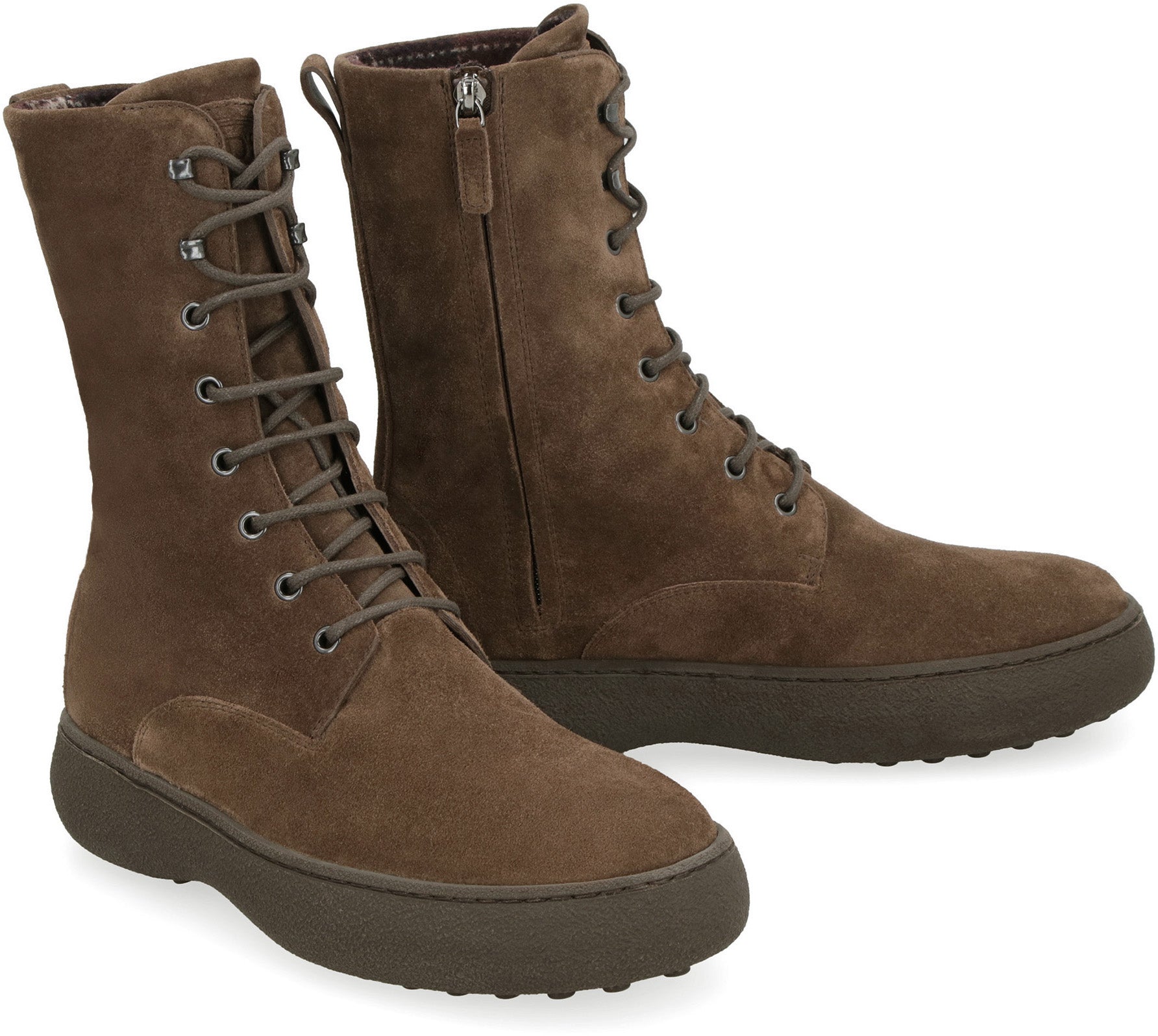 Step out in style with these luxurious lace-up suede ankle boots. The front lace-up fastening and round toe add a modern twist to the classic ankle boot design, while the rubber sole with studs provides added grip and durability. Crafted from 100% rubber and 100% calf, these boots are the perfect combination of fashion and function, making them a must-have for any fashion-forward wardrobe.