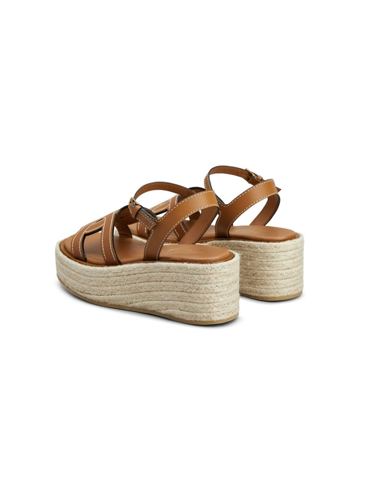 Step into summer with these stylish wedge sandals that are perfect for any occasion. The combination of brown calf leather and braided raffia platform adds a touch of boho-chic to your look, while the buckle-fastening ankle strap ensures a comfortable and secure fit.