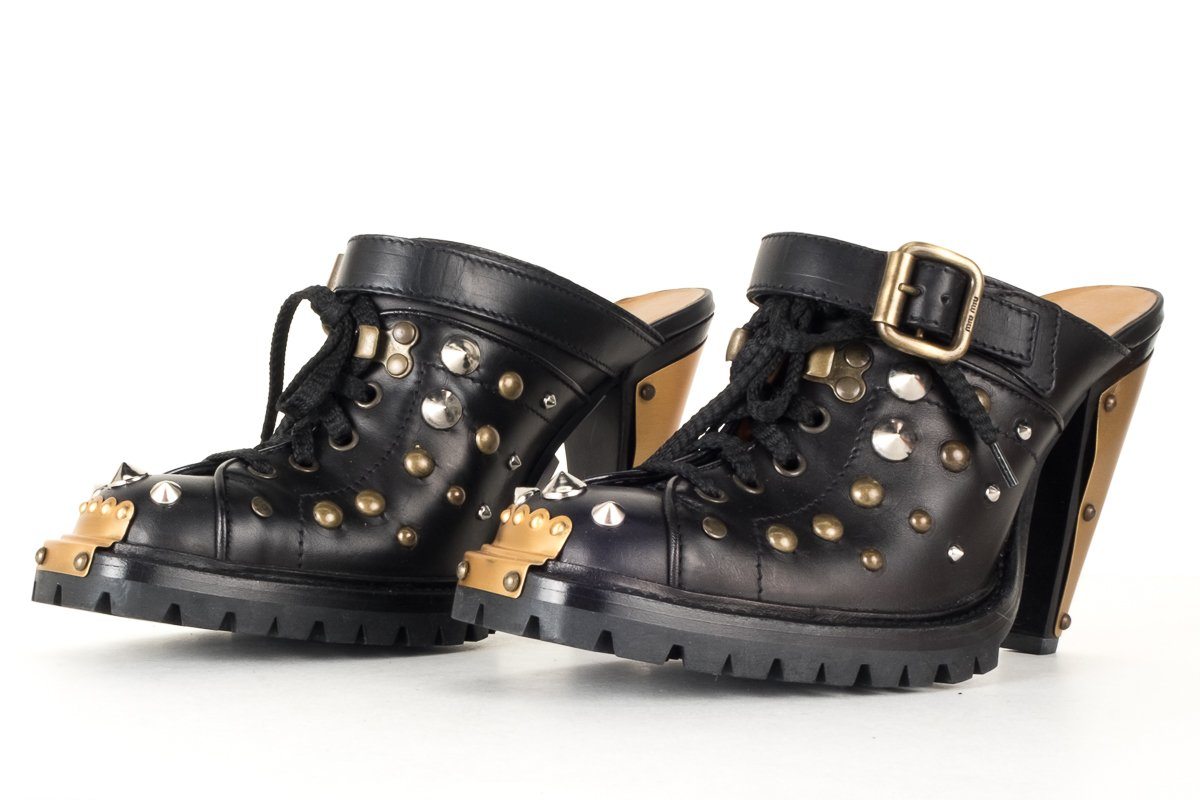 Miu Miu Black Leather Studded Heeled Mules 37.5