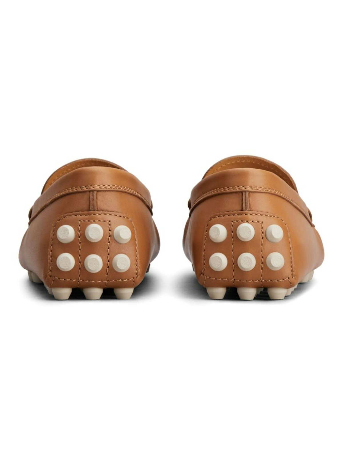 CAMEL BROWN LEATHER CHAIN MOTIF ROUND TOE SIGNATURE GOMMINO SOLE