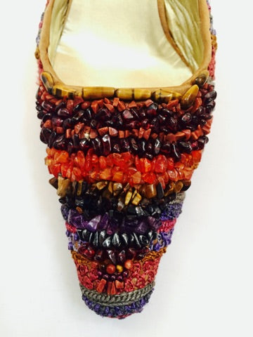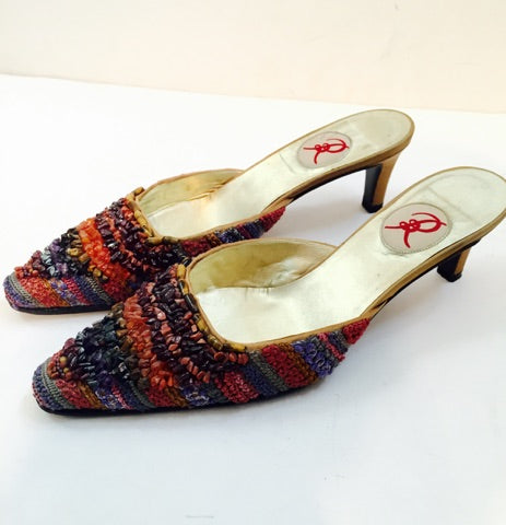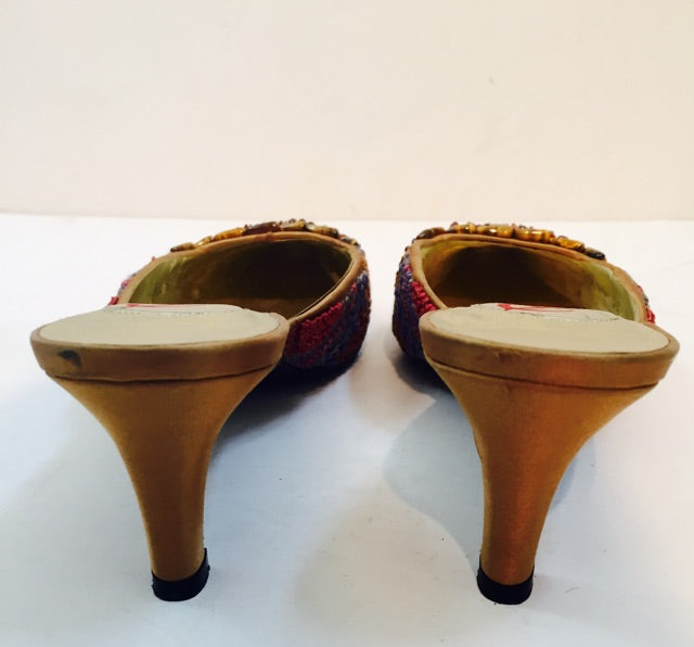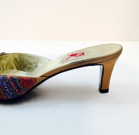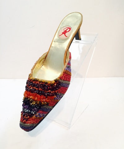 Here is a pair of beautifully crafted beaded pointed toe heels by Renaud Pellegrino. This pair is in great condition, with some light wear to the insole portion of the heel. Please view photos for additional details.