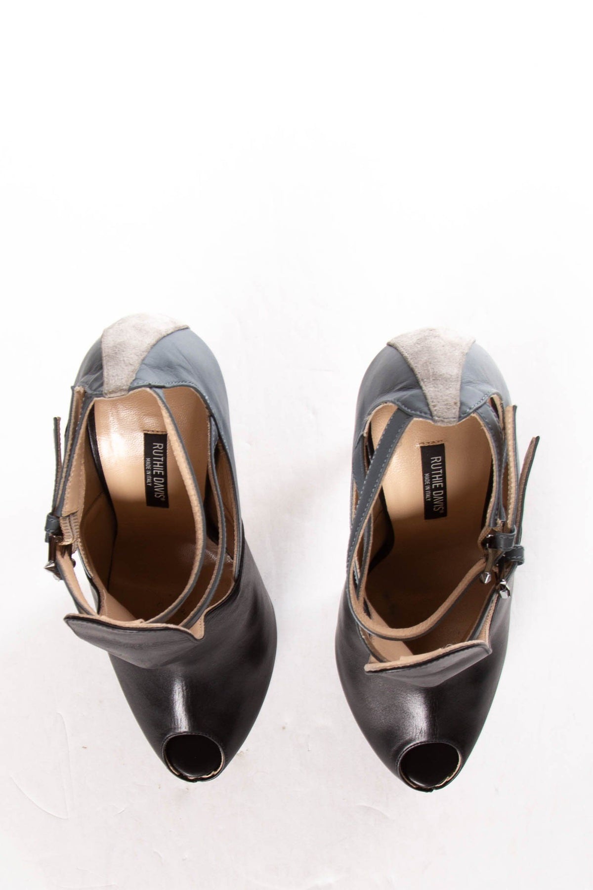 Ruthie Davis Black & Blue Peep-Toe Platform Pumps SZ 39