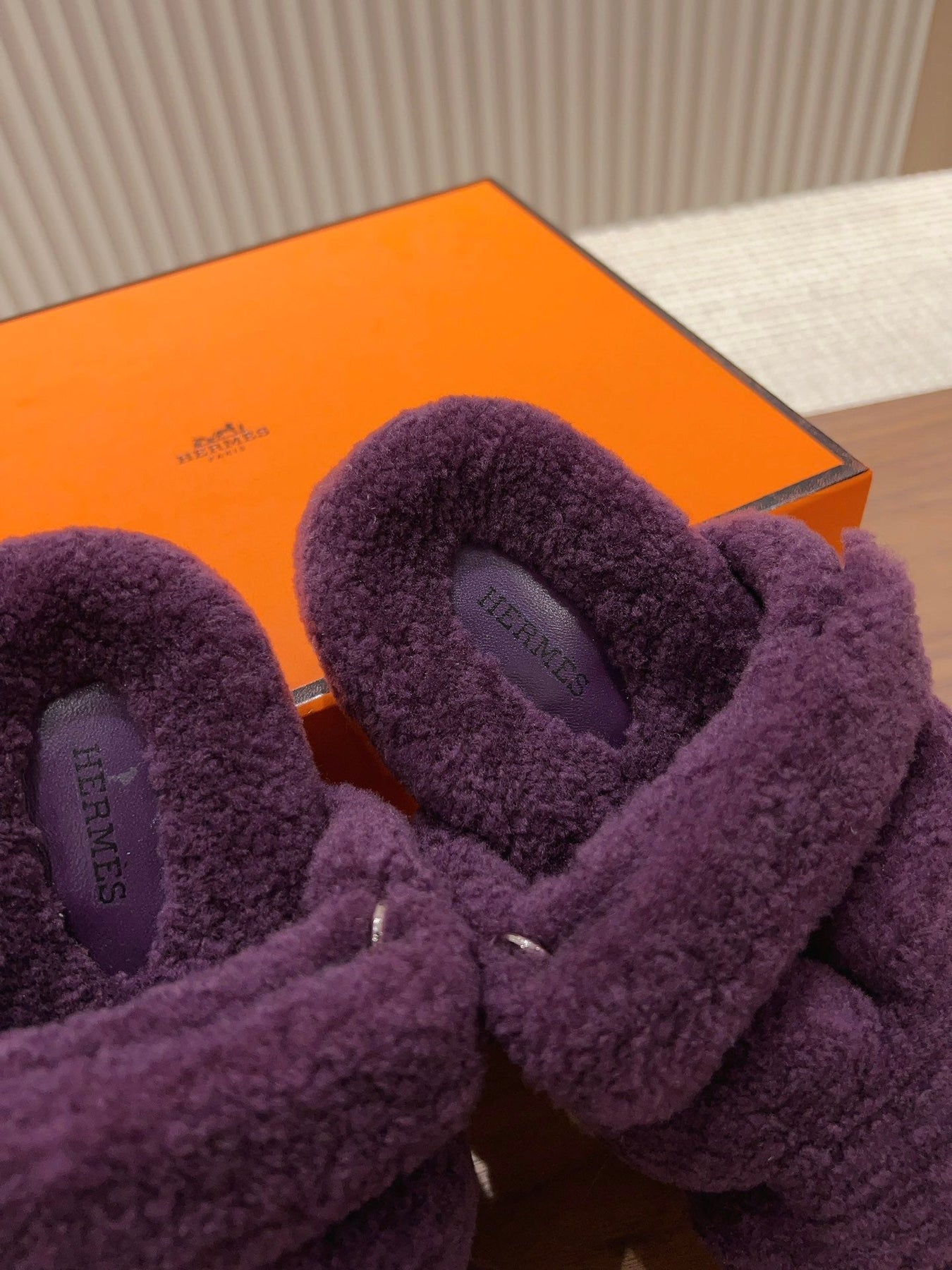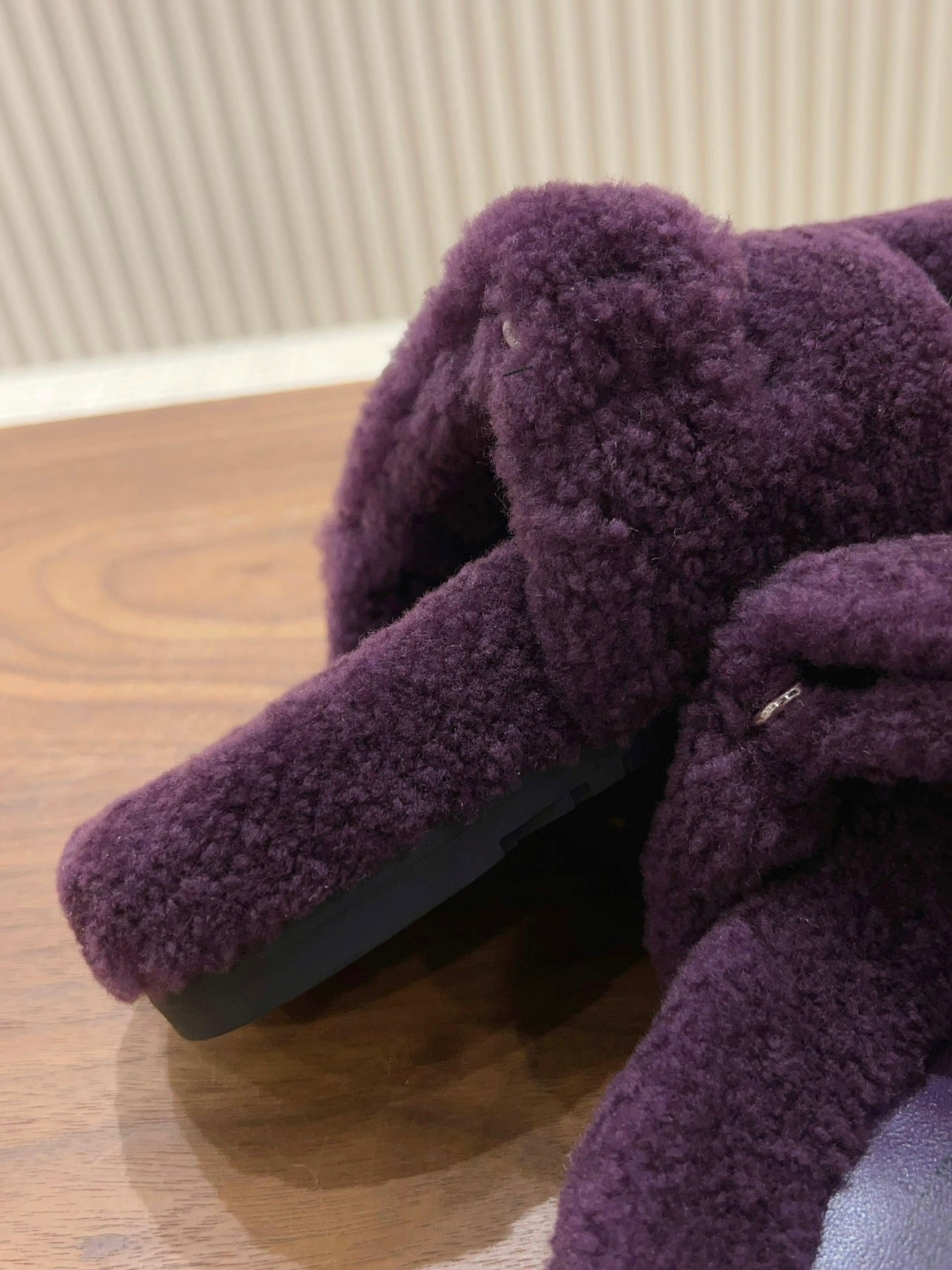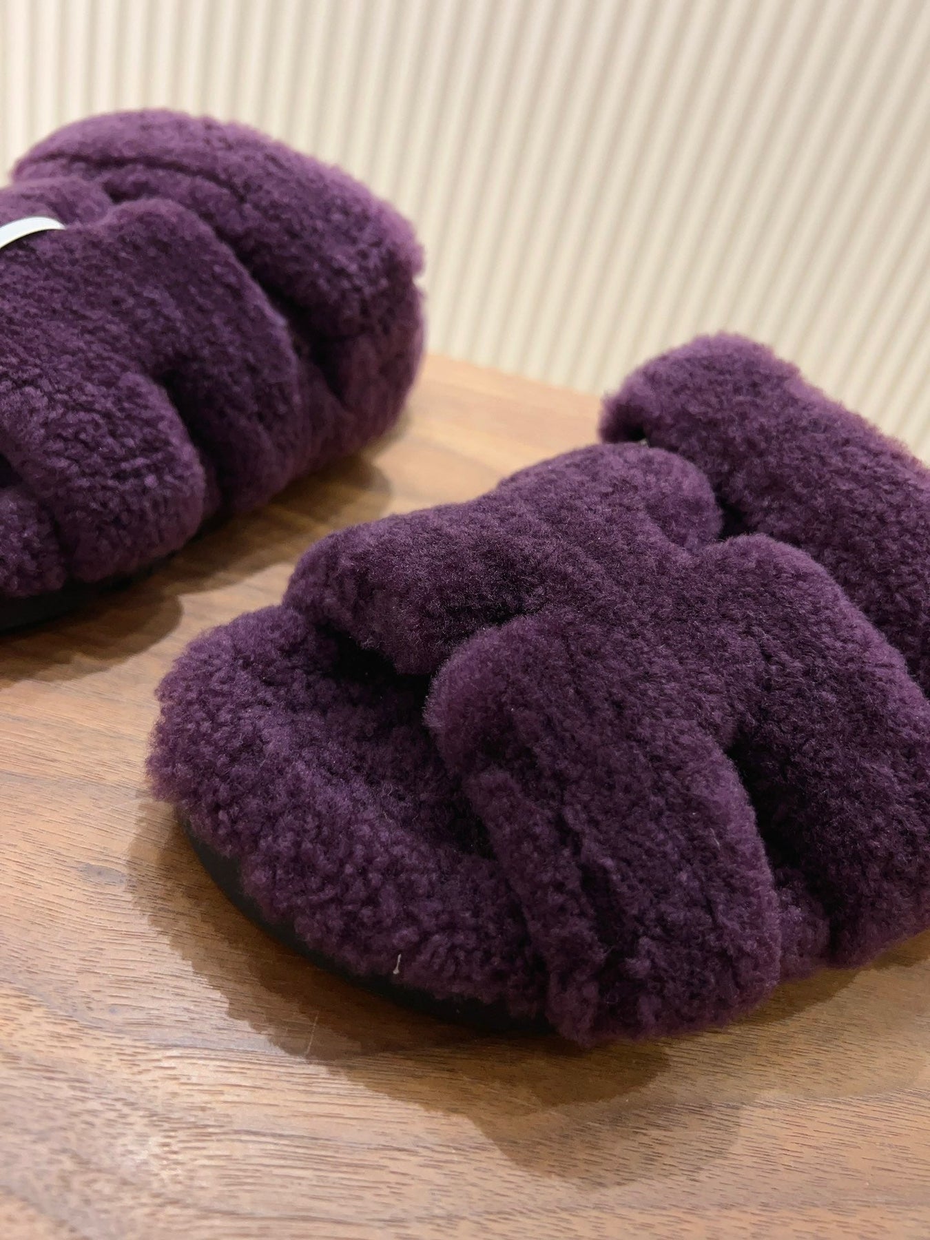 Techno-sandal in shearling with anatomical rubber sole and adjustable strap.