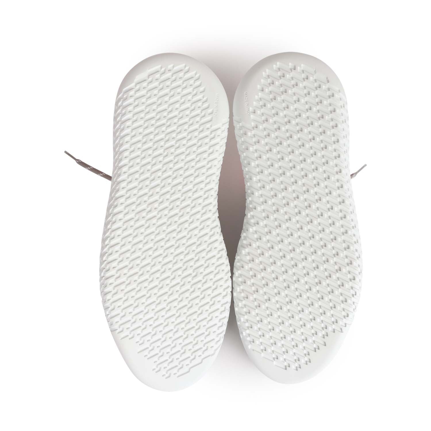 This pair of Hermes Duel Sneakers are in metallic silver knit and metallic calfskin with a white rubber sole and black and orange piping detail.