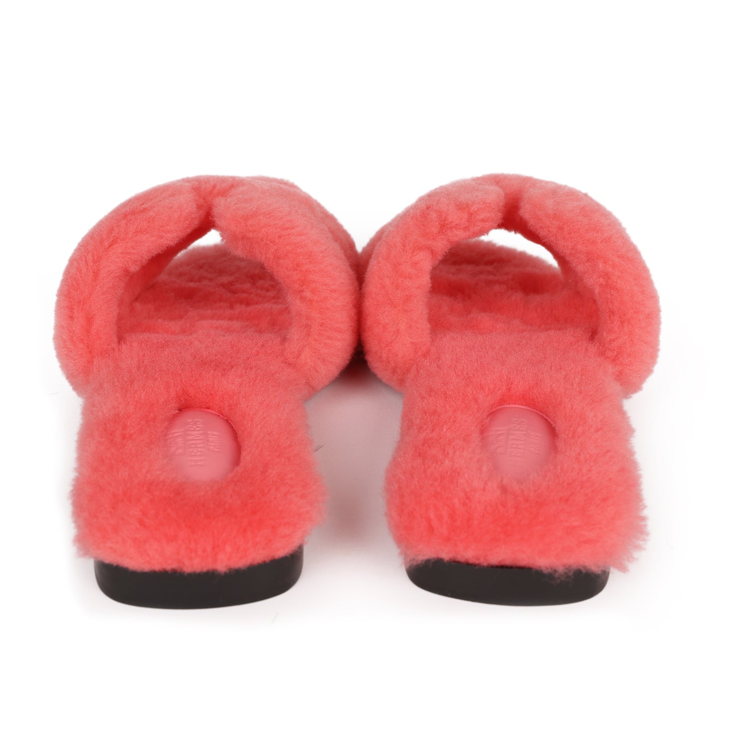 This pair of Oran Sandals are in Rose Du Desert shearling and feature the iconic H crossover strap with a black rubber sole.