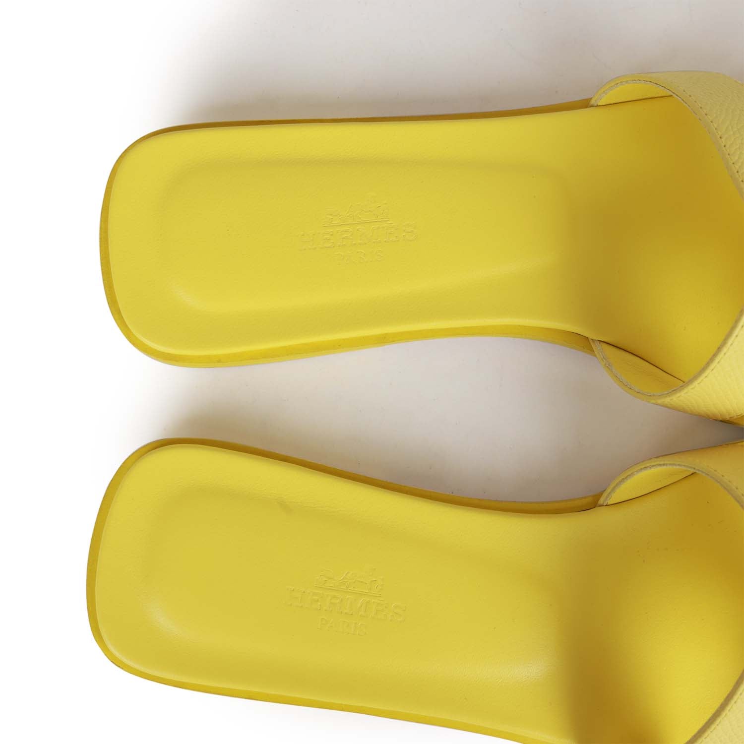 This pair of Oran Sandals are in Lime epsom leather with tonal stitching and feature the iconic H crossover strap size 38EU