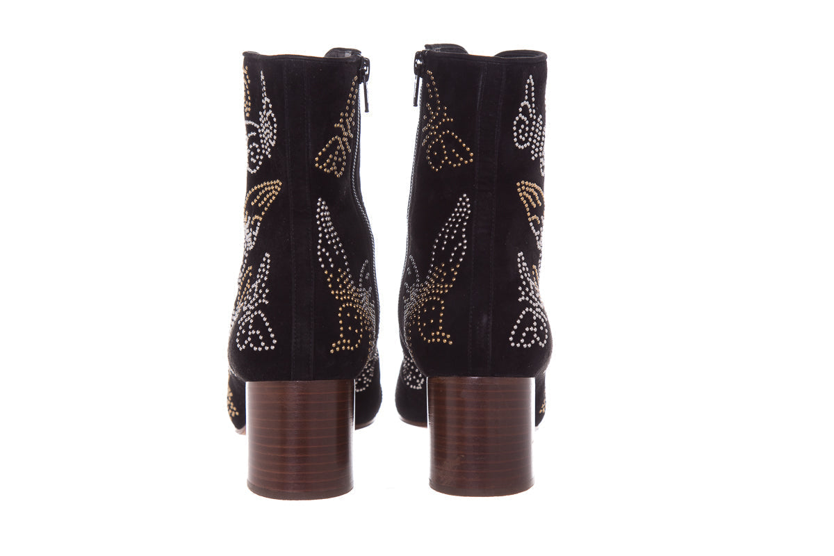 Valentino Black Butterfly Studded Suede Booties SZ 38