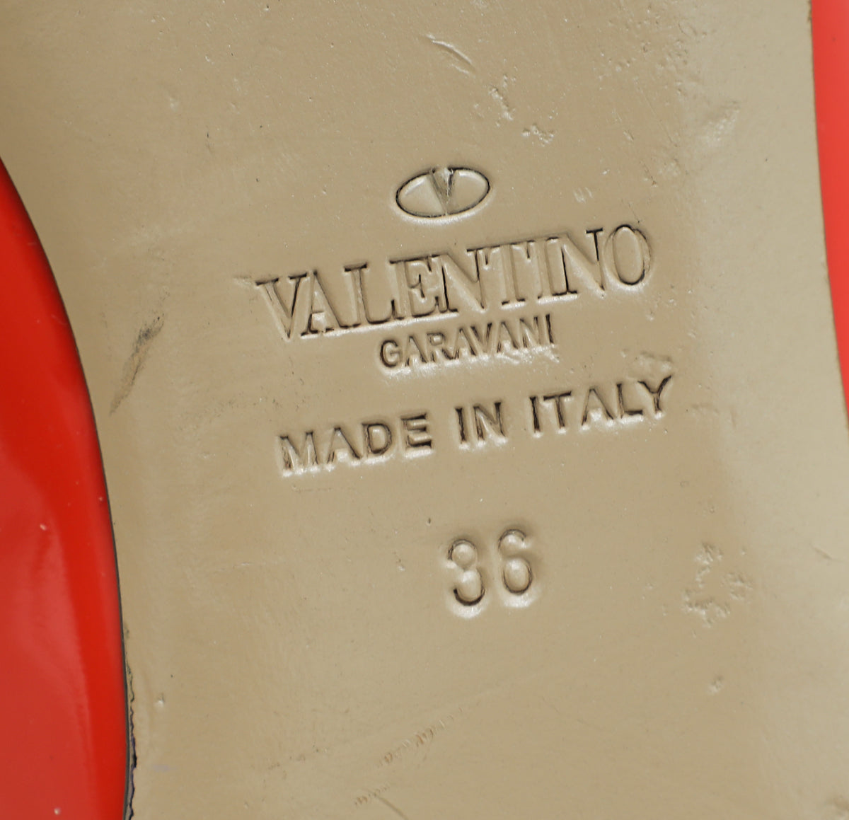 - Material: Coral Patent Leather with Nude Leather Trim and Studs