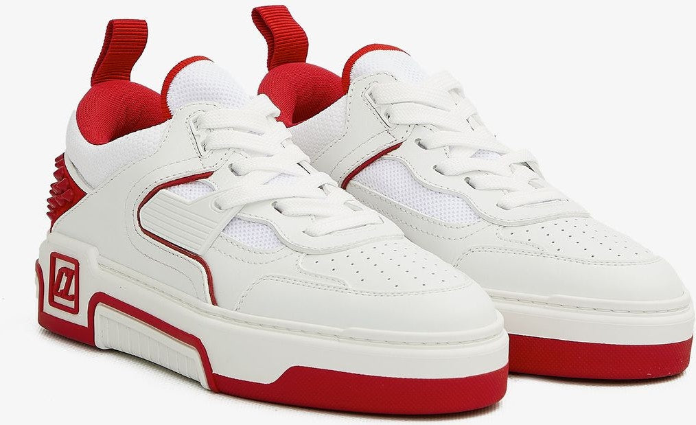 Step into the spotlight with these striking ASTROLOUBI SNEAKERS. Crafted in white and red leather, these eye-catching kicks feature edgy spikes at the back and the iconic CL monogram on the side. With a lace-up closure, rear loop tab, and durable rubber sole, these sneakers are as comfortable as they are stylish. Whether you're hitting the streets or making a statement at a party, these Italian-sized sneakers will take your look to the next level.