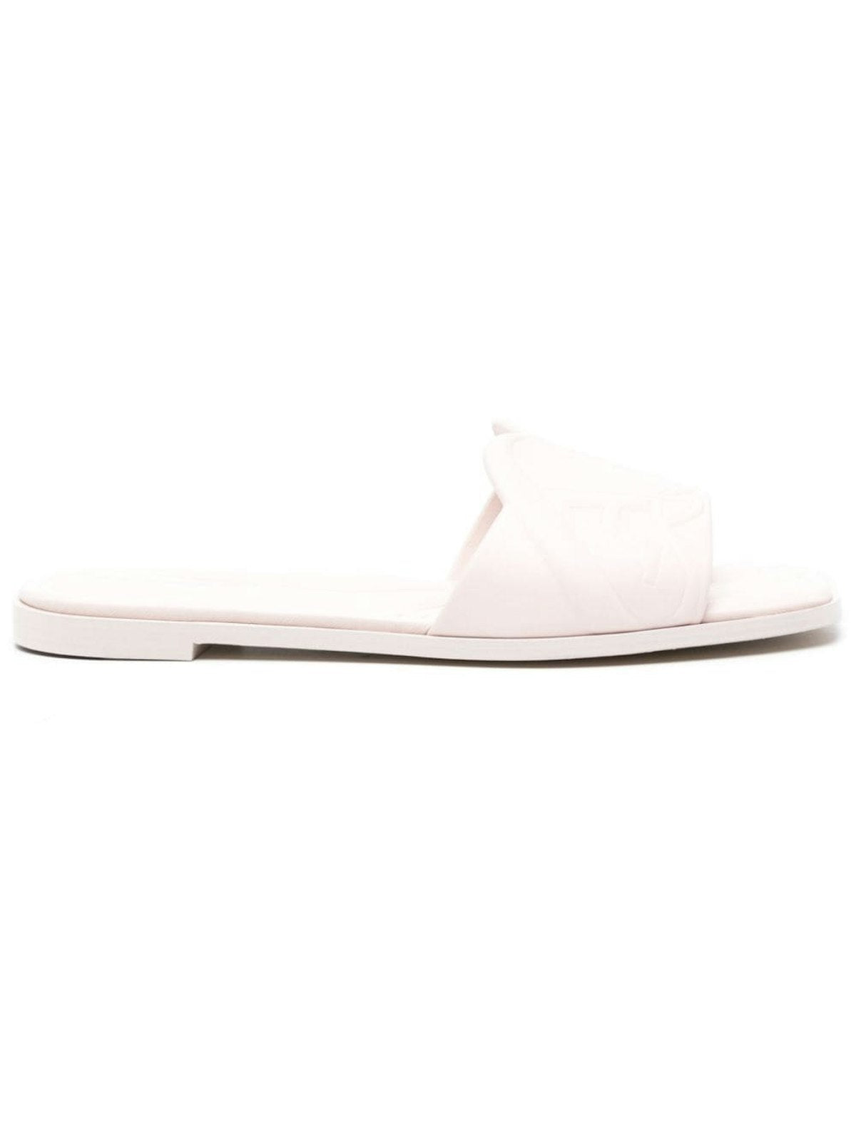 Step out in style and comfort with these chic leather flat sandals. The smooth grain logo-embossed strap and square open toe add a hint of sophistication to any outfit, while the branded leather insole and flat leather sole ensure all-day wearability. Slip them on and complete your look with ease.