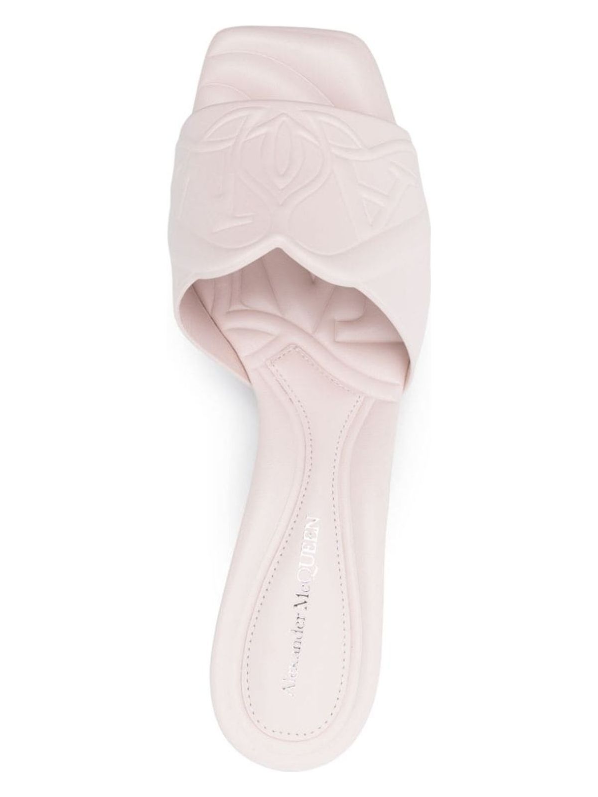 Step into luxury with these light pink calf leather mules, featuring a smooth grain, signature seal embellishment, and a branded leather insole. With a square open toe and mid block heel, these slip-on style mules are the perfect combination of comfort and style.