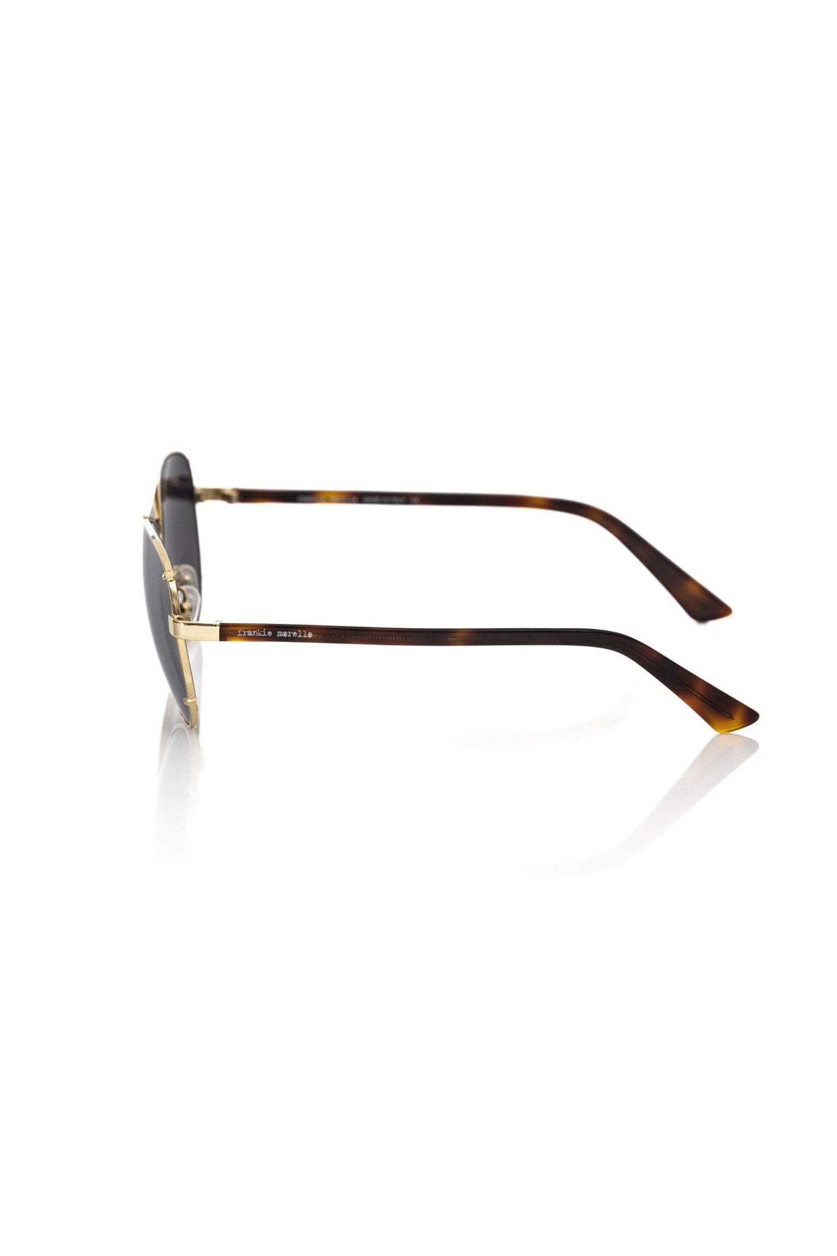 Step into the sunlight with poise in these sleek Aviator Elegance Sunglasses. Designed by the renowned Frankie Morello, these glasses boast a chic metal profile in a luxurious gold tone complemented by Havana rods. The smoked lenses not only add a touch of mystery but also ensure protection from the glaring sun, making them both practical and stylish. Material: 100% Metallic Fibre Color: Gold Country of origin: IT