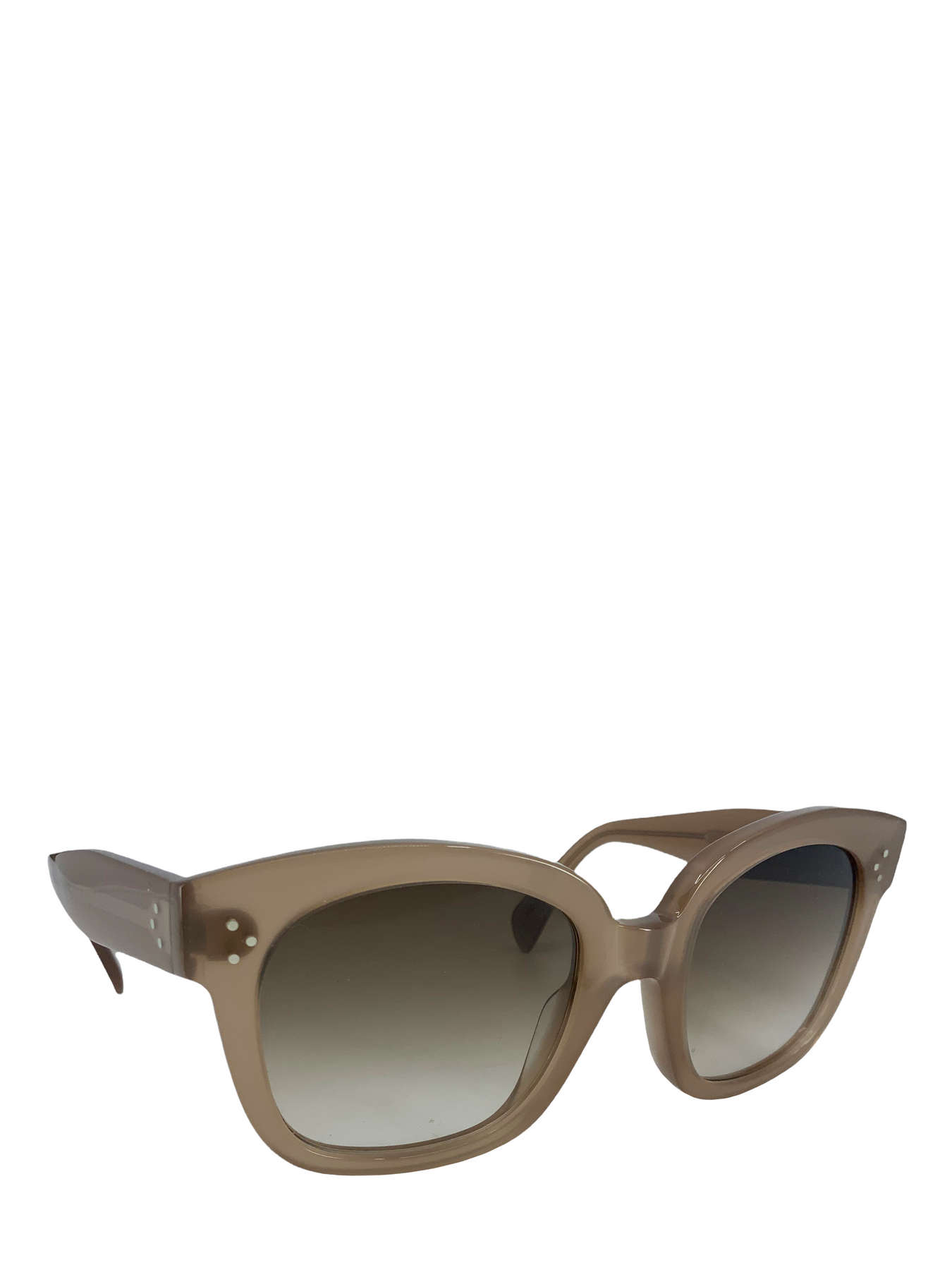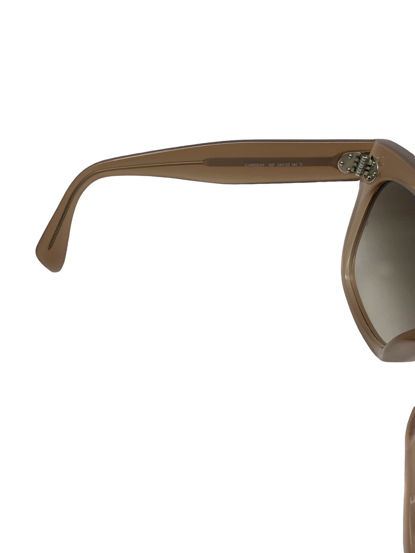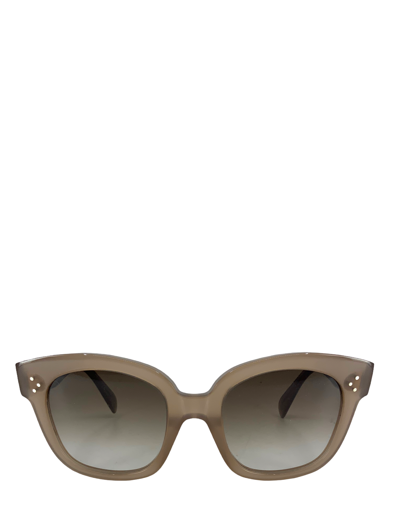 Add to your collection this d pair of Celine Oversized Sunglasses CL4002UN featuring a classic taupe acetate frame with a signature gold-tone 'CELINE' logo at the temple.