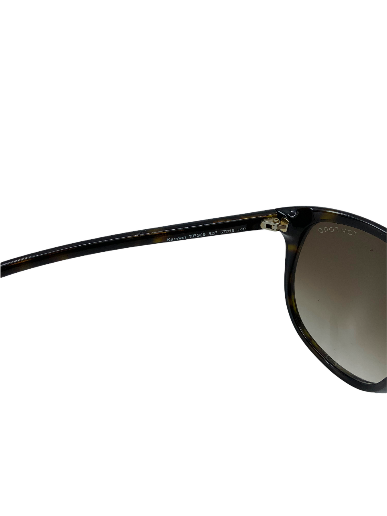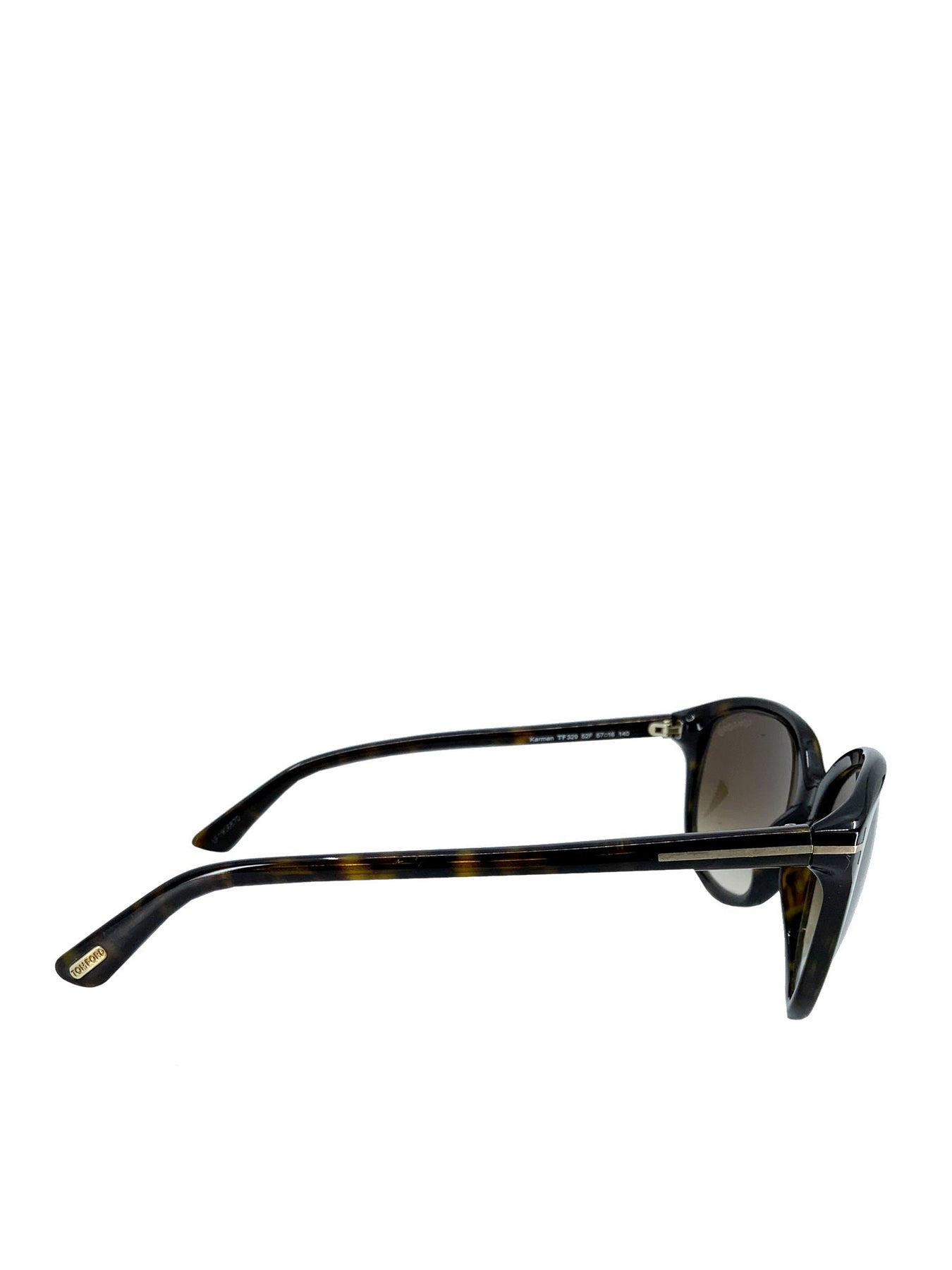 Add to your collection this d pair of Tom Ford Karmen Polarized Sunglasses TF329 featuring brown cat eye frames with signature engraved logos at the temples tips.