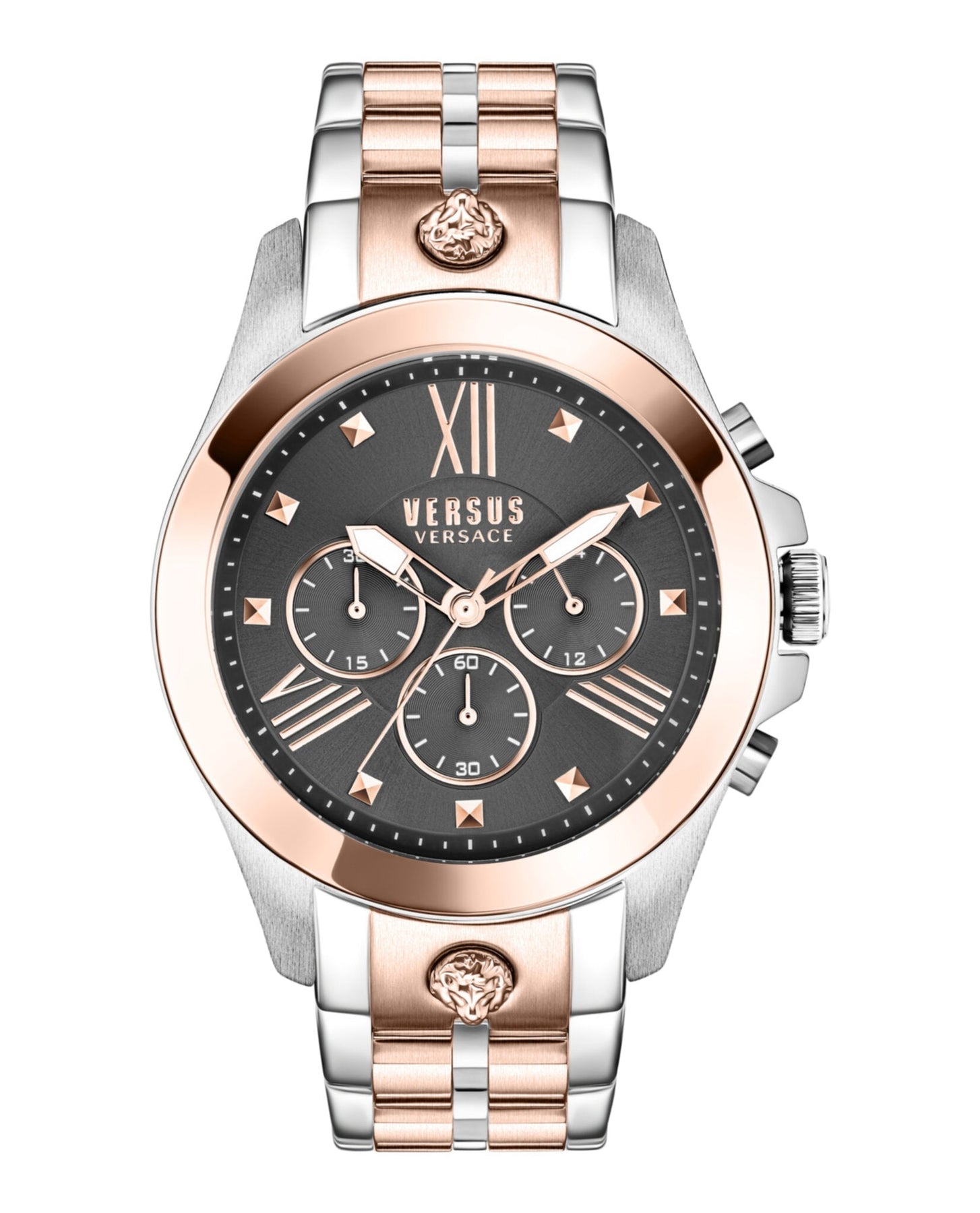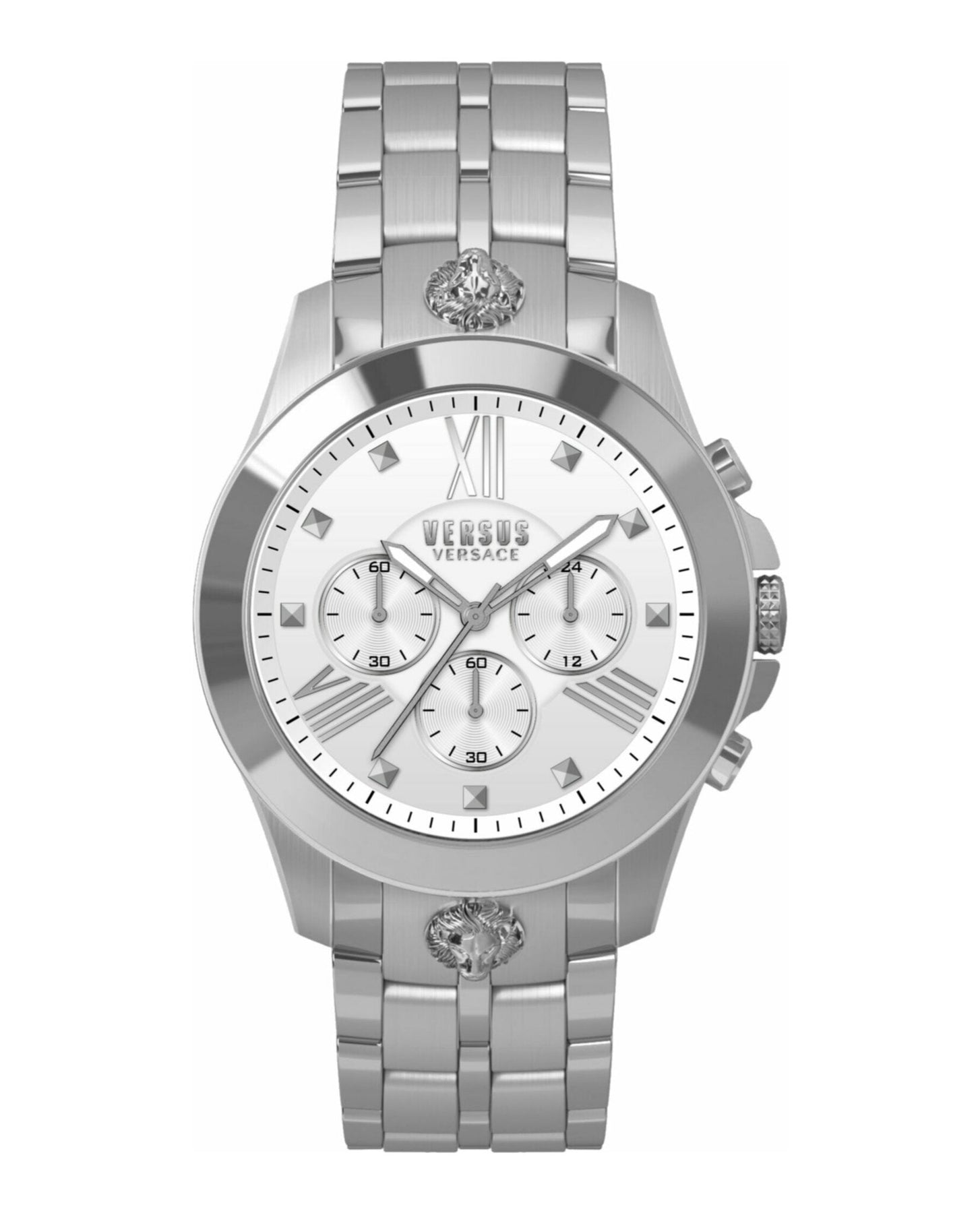 Chrono Lion Mens Watch 44MM IP Yellow Gold Case White Enamel Dial Leather Strap
