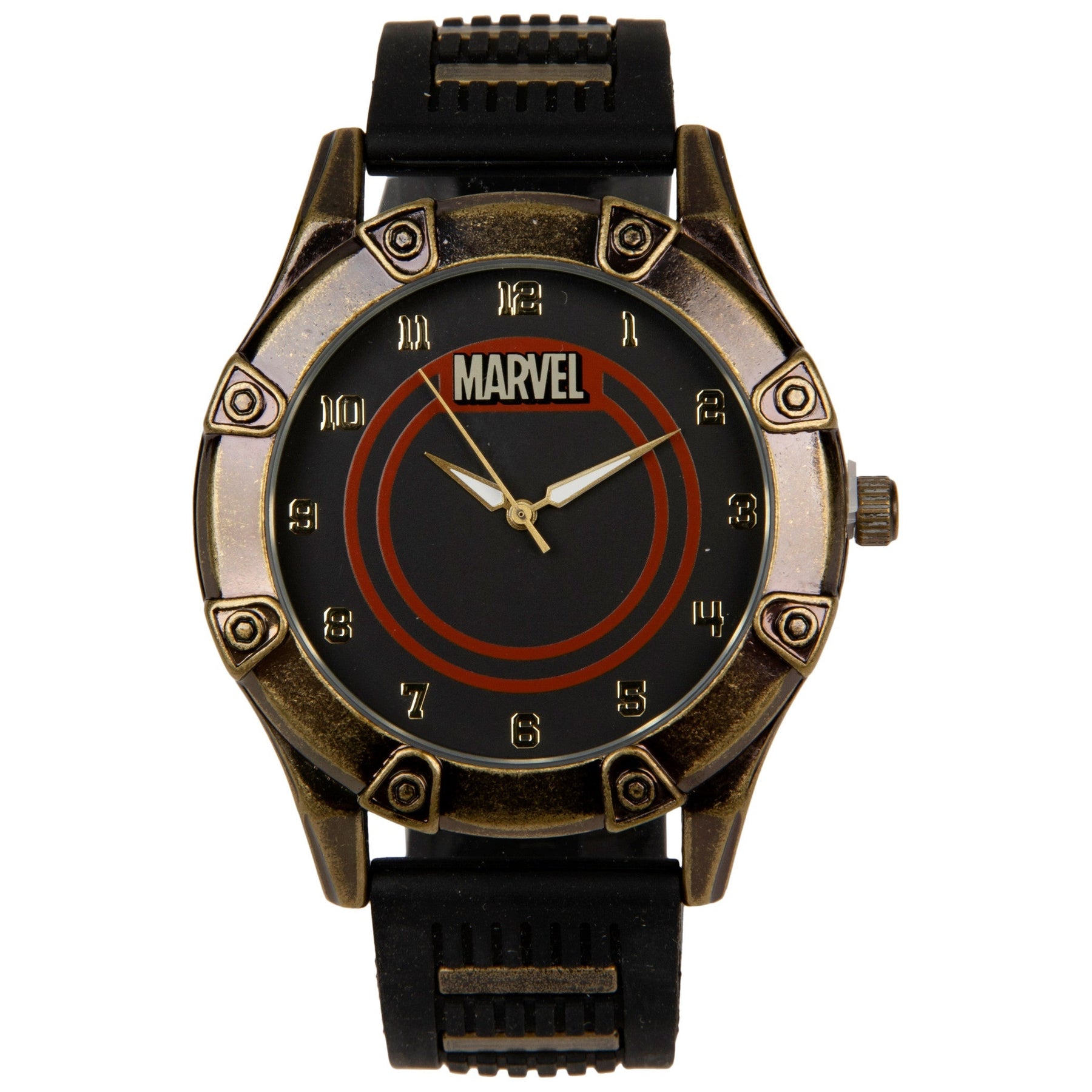 Never miss a Comic Con again with the help of this officially licensed Marvel Logo Watch with Silicone Band. Built with a black silicone band, this snazzy black and red timepiece features the iconic Marvel logo and beautiful gold detail making it the perfect addition to the wrist of any Marvel fan.