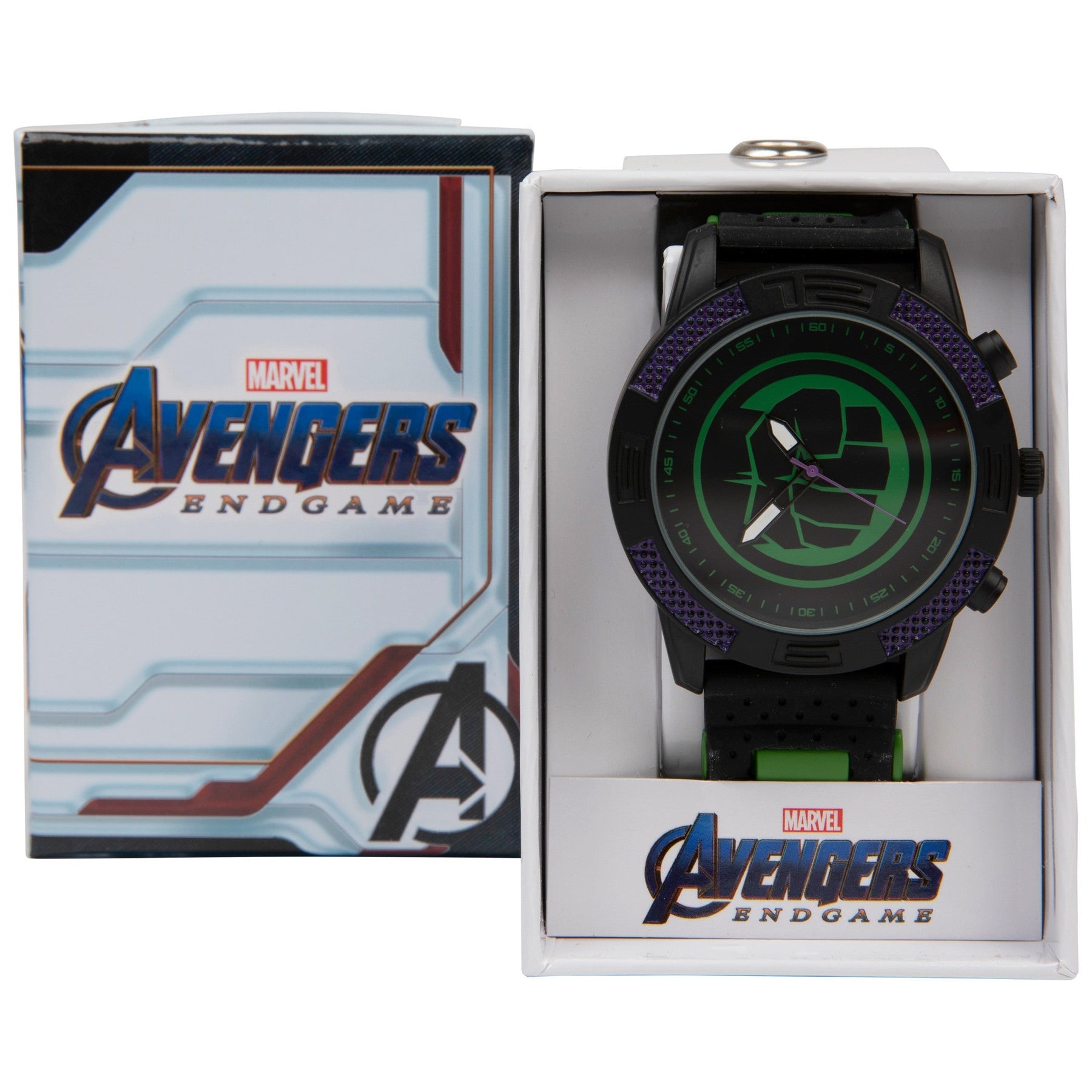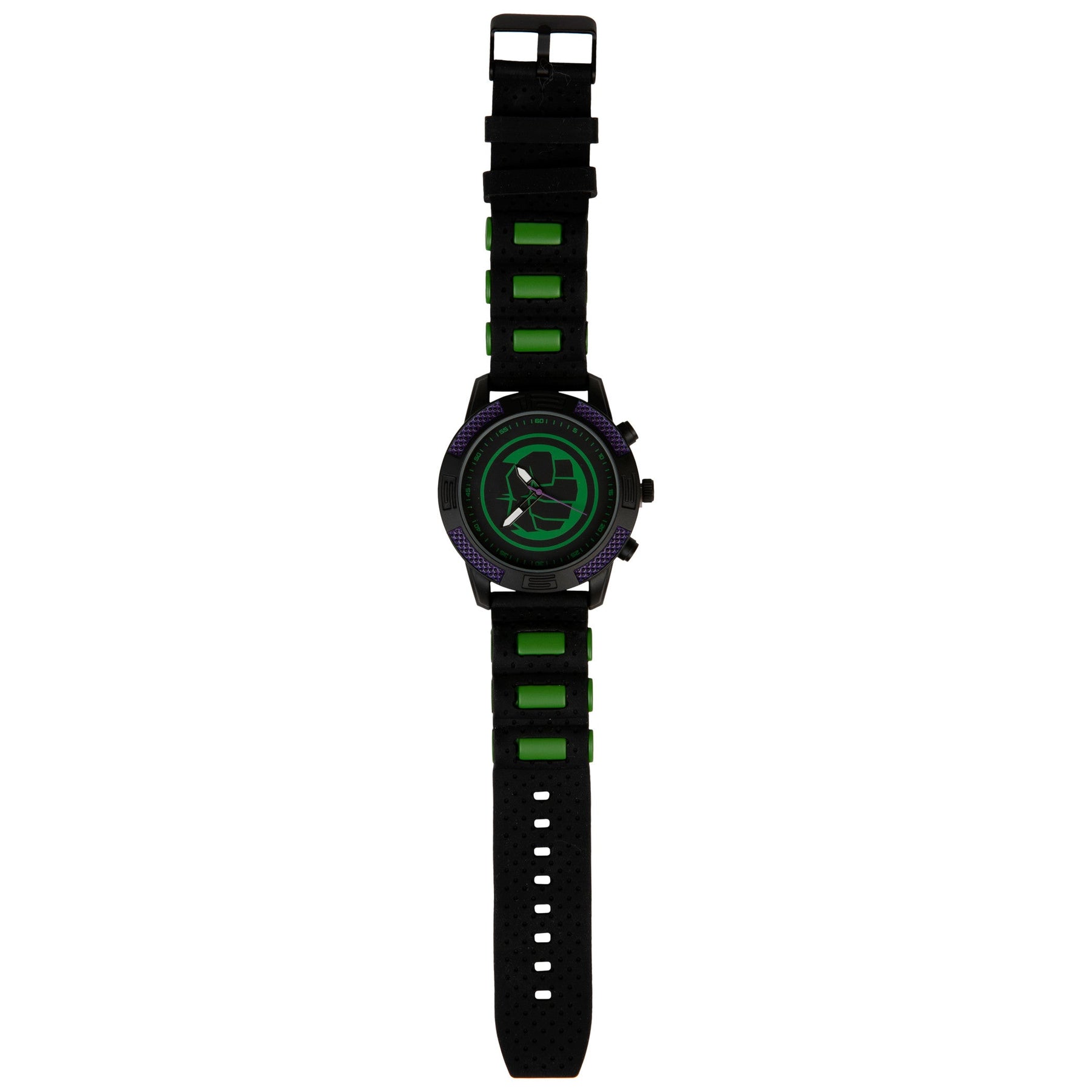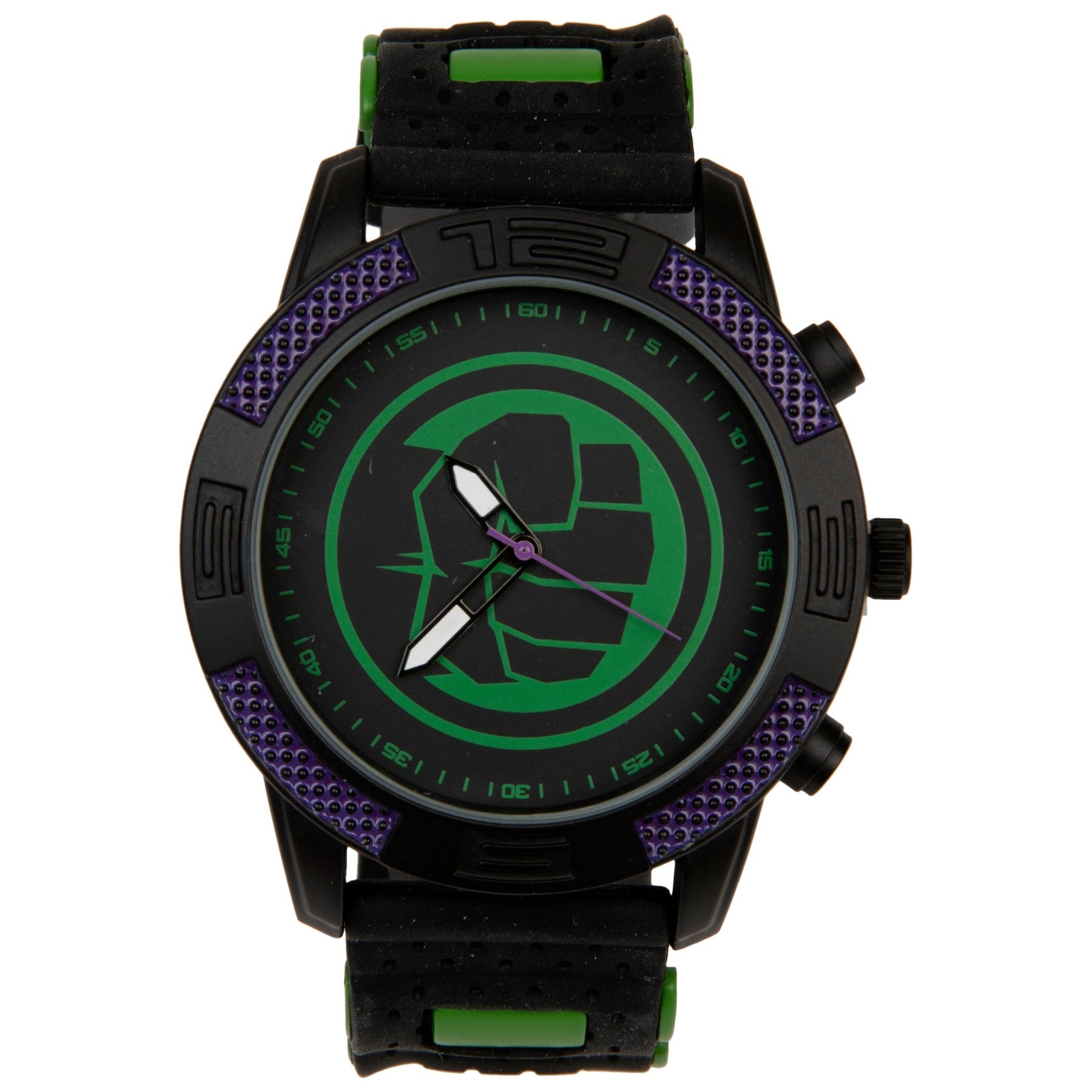 Smash your To-Do List with time to spare with the help of this officially licensed The Incredible Hulk Symbol Marvel Watch with Silicone Band. This black and green Marvel watch features the timeless Hulk Fist symbol on its face and is attached to a snazzy silicone band.