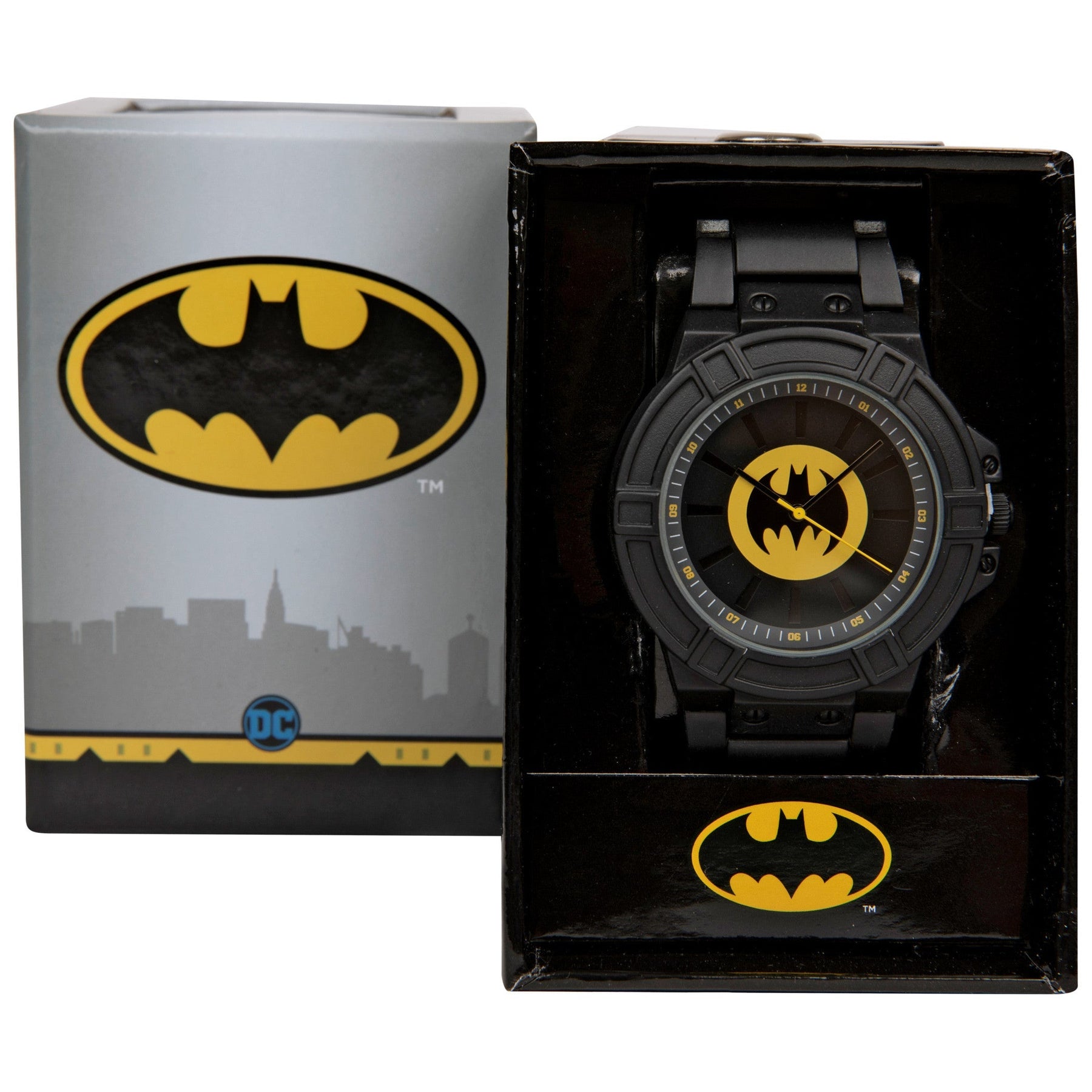 Make sure you don't miss Alfred's surprise birthday bash with the help of this officially licensed DC Comics Batman Classic Symbol Watch Face with Black Metal Band. Made from sleek black metal, this epic wristwatch from DC Comics features the timeless Batman Classic Symbol on the face and a matching black metal band.