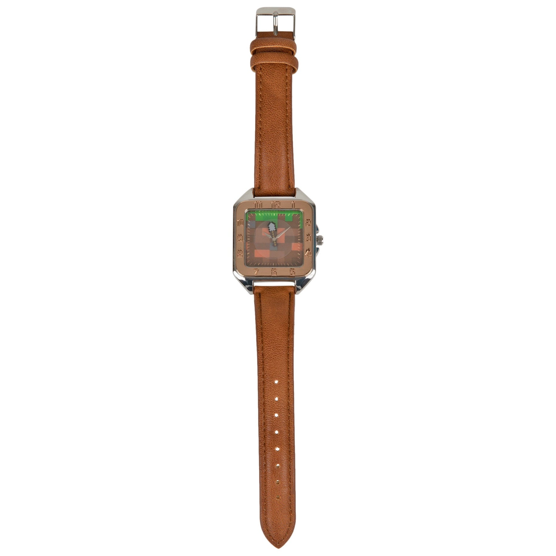 Craft an entire world while keeping a tight schedule with the help of this officially licensed Minecraft Earth Block Watch Face with Faux Leather Wrist Band. This Minecraft Watch features a silver metal Earth Block watch face and comes with a matching brown faux leather wrist band.