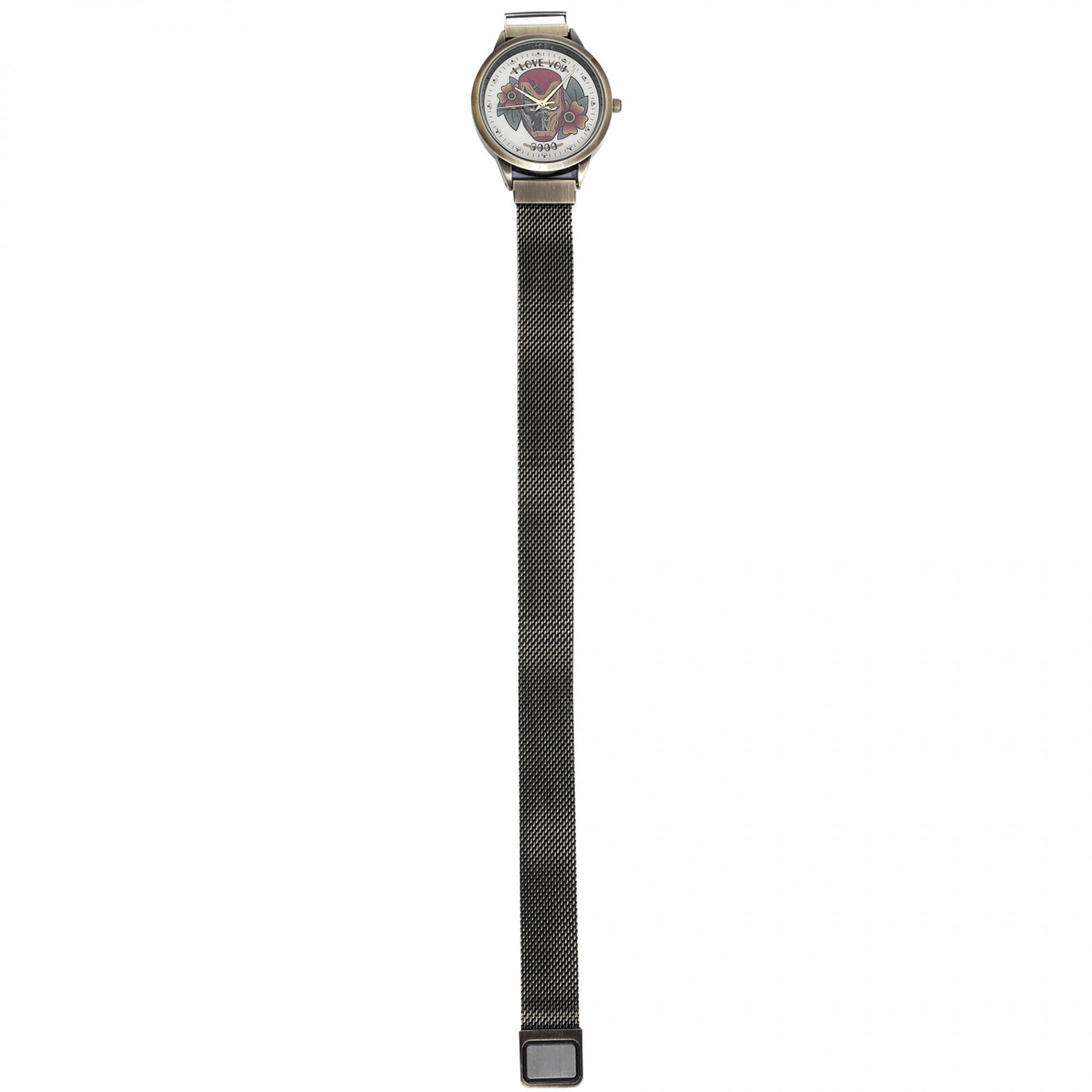 Make sure you never keep Pepper Potts waiting with the help of this officially licensed Marvel Comics Iron Man Floral Watch with Metal Band. This sleek Marvel wristwatch is made from gold metal and features a cool Iron Man Floral "I Love You 3000" watch face design and gold metal band.